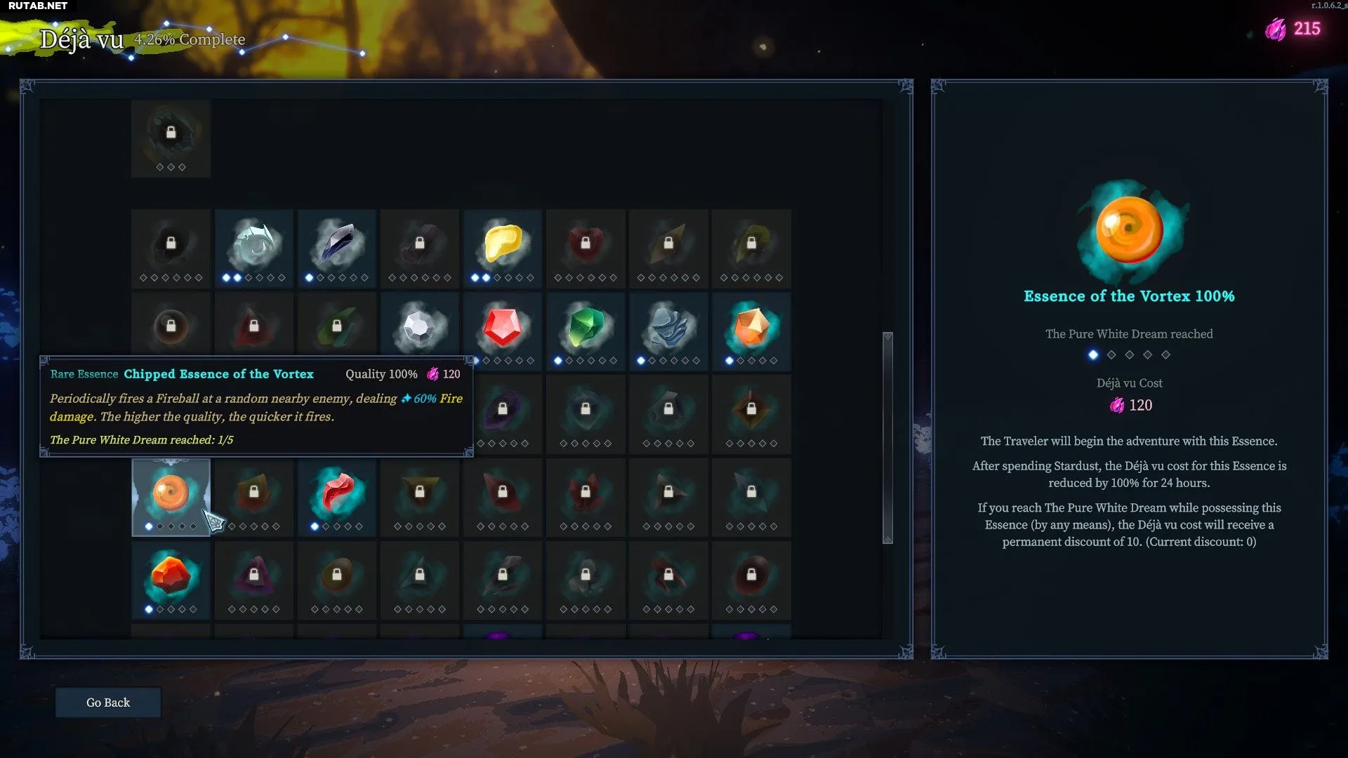 Для тех, кто не в курсе: функция «Дежавю» разблокируется в лобби после достижения совокупного уровня Странника 50. Она позволяет начать забег с любым Воспоминанием или Субстанцией, которые вы ранее разблокировали. Их можно получить, завершив забег с ними на персонаже или выполнив испытания.