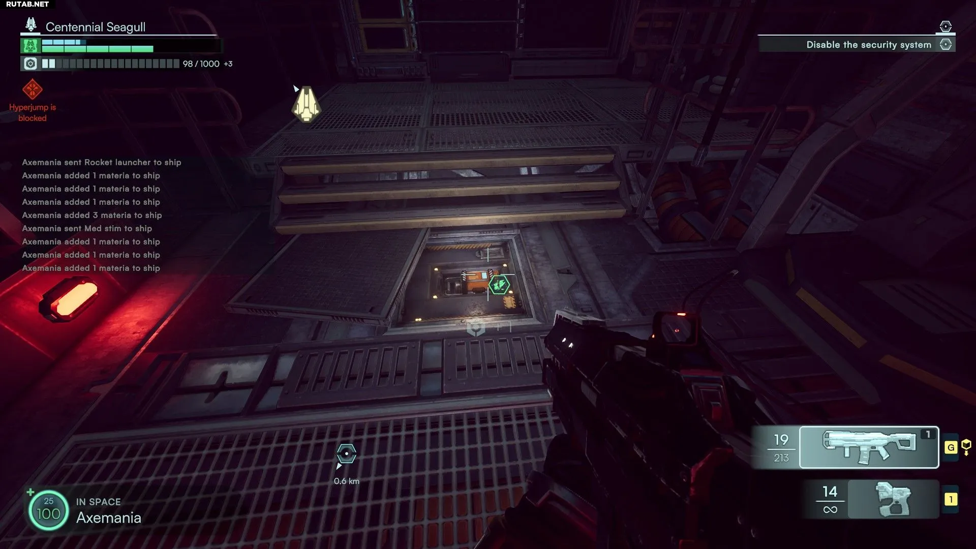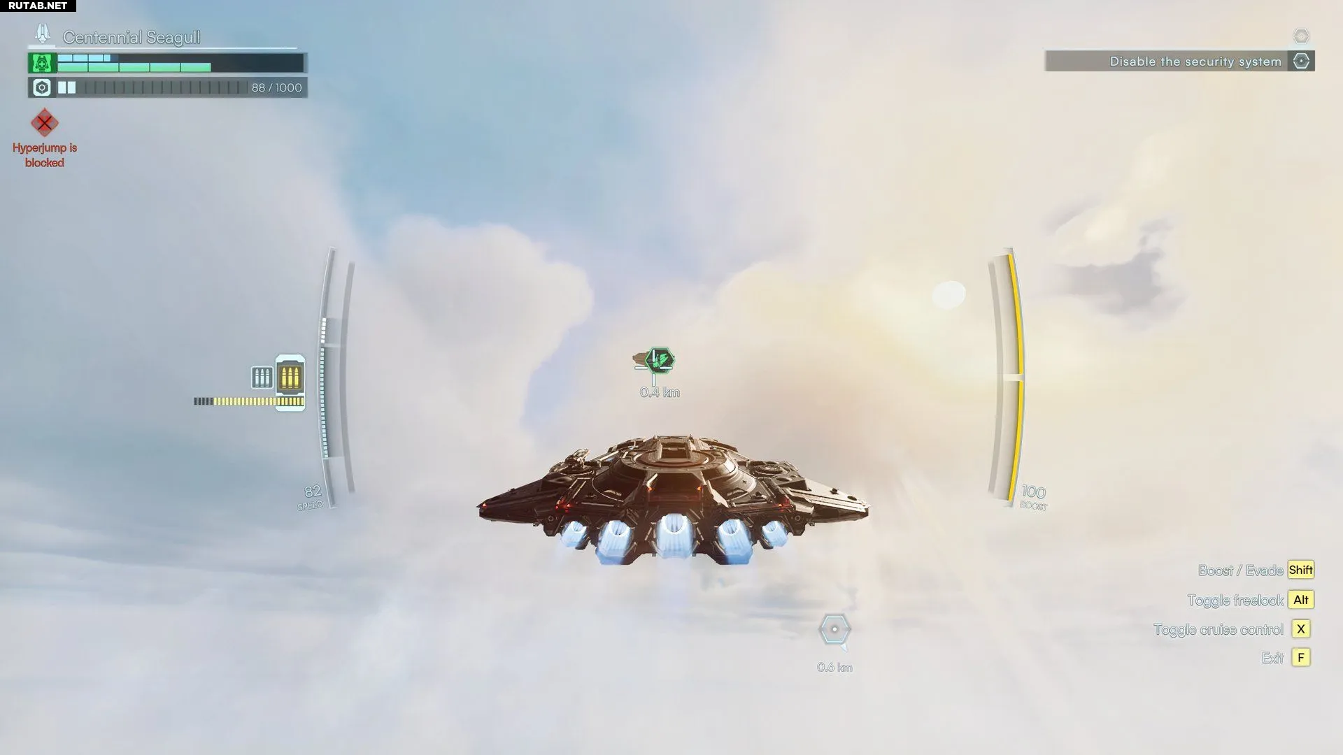 Добравшись до узла с событием, осмотритесь в поисках плавающего корабля. На изображении выше показан заброшенный DT-4 Dart. Чтобы разблокировать этот корабль, нужно проникнуть на борт и найти его черный ящик. Исследуйте судно, следуя за зеленым маркером на экране. Уничтожьте роботов внутри и не забудьте обыскать ящики.