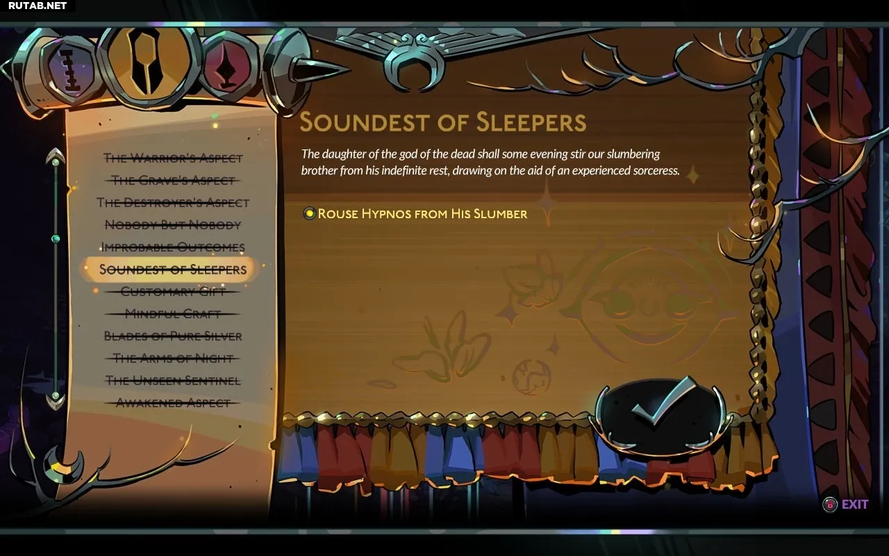 В следующий раз, когда вы вернетесь на Перекресток, вы сможете использовать Сажу, чтобы сварить третье и последнее зелье «Конец глубочайшей дрёмы», которое поможет вам разбудить Гипноса раз и навсегда. После того как вы пройдете через множество слоев его снов, чтобы разбудить каждую версию бога, Гипнос проснется с испугом и поспешно покинет Перекресток. Жаль, но, по крайней мере, это еще один пункт из Списка Судьбы, о котором вам больше не нужно беспокоиться!