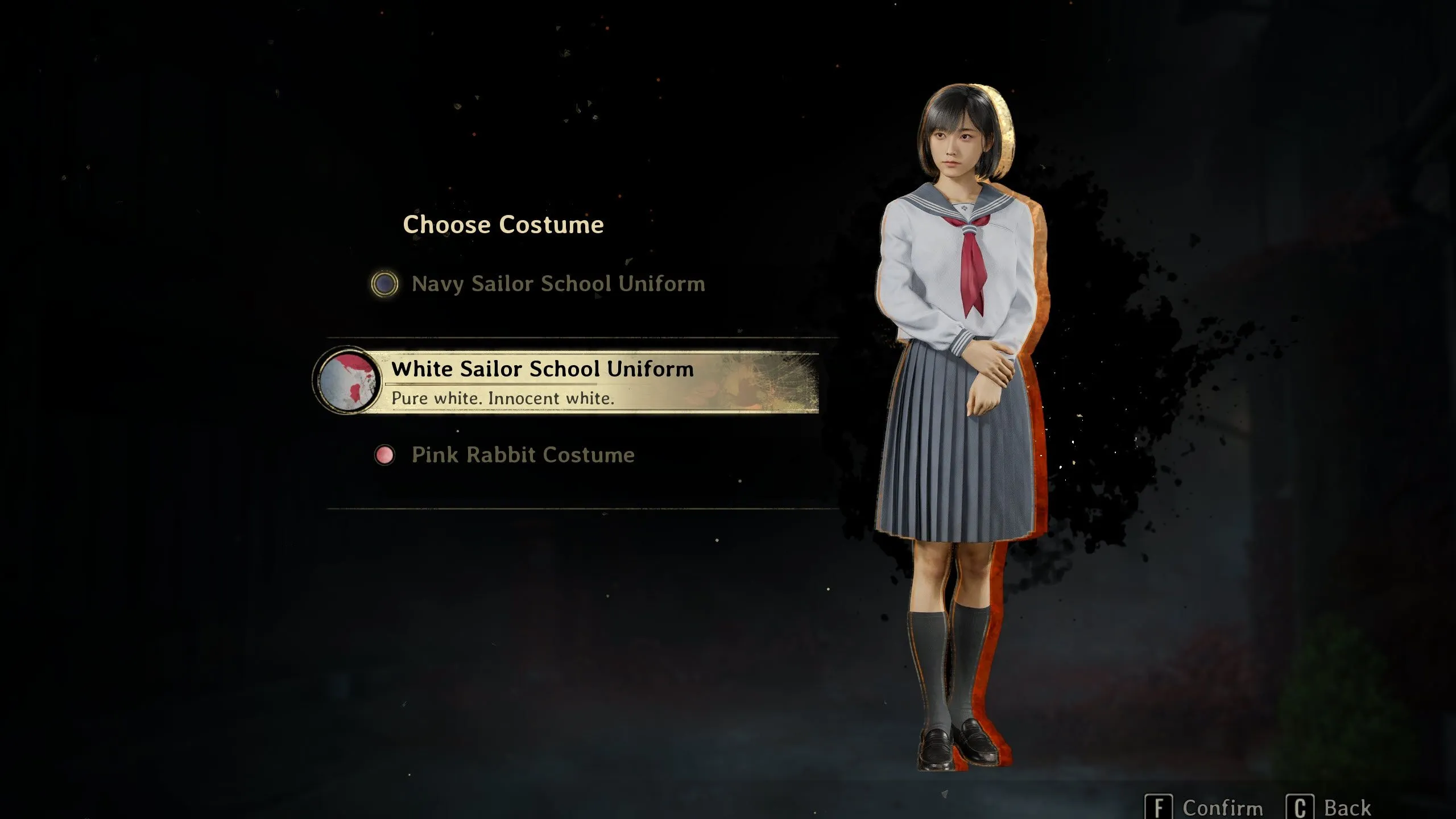 Белая школьная форма-сейлор фуку | Чисто белый цвет. Невинный белый | Белая версия стандартного костюма, которую игроки получают за предзаказ любого издания Silent Hill f. После запуска игры этот костюм будет недоступен. |