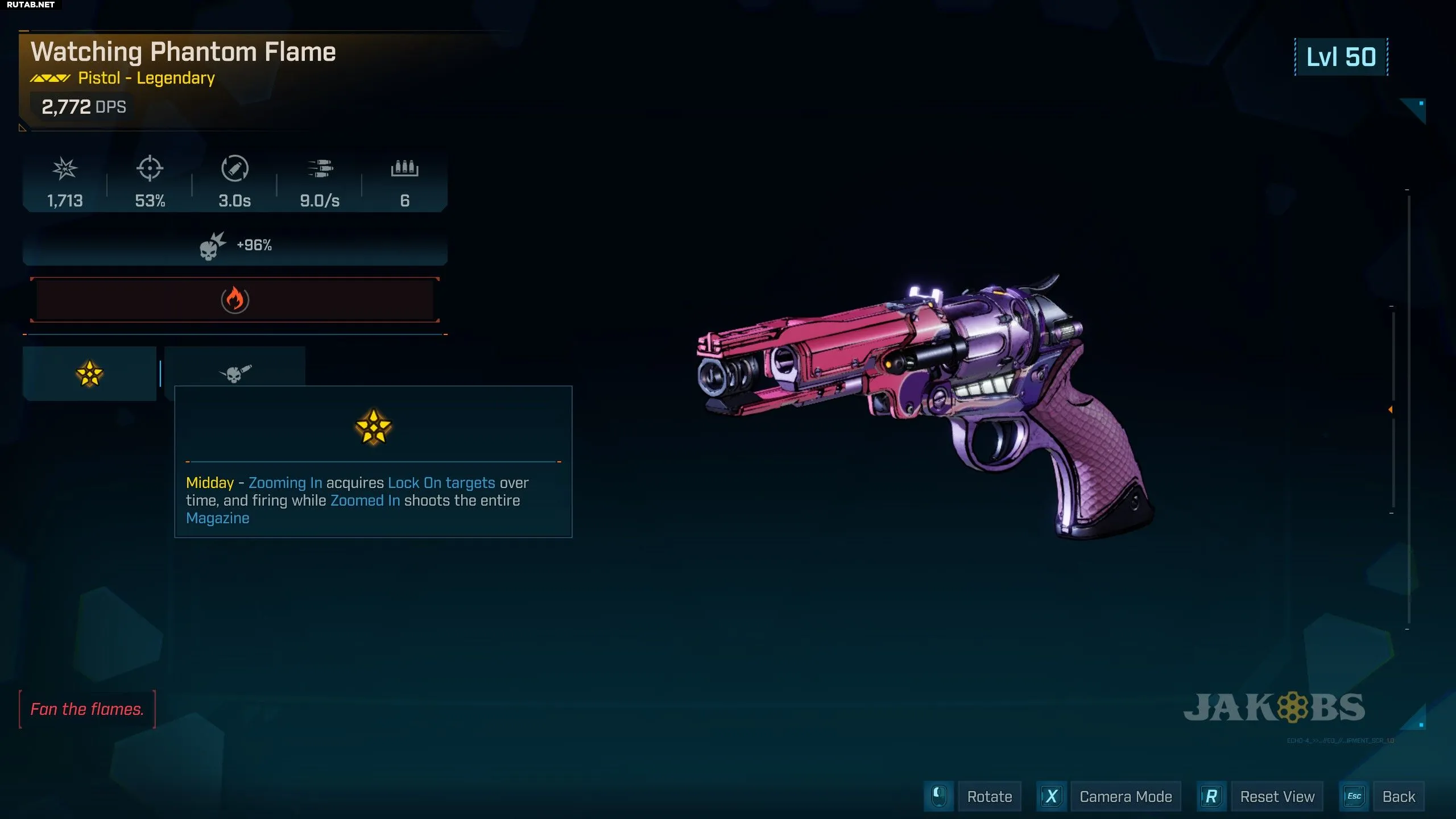 Компания Джейкобс славится своими прекрасными пистолетами, и Phantom Flame доставит врагам немало фантомных болей. Высокая скорострельность и быстрая перезарядка делают его отличным оружием, но его истинная сила раскрывается в уникальном эффекте Midday.