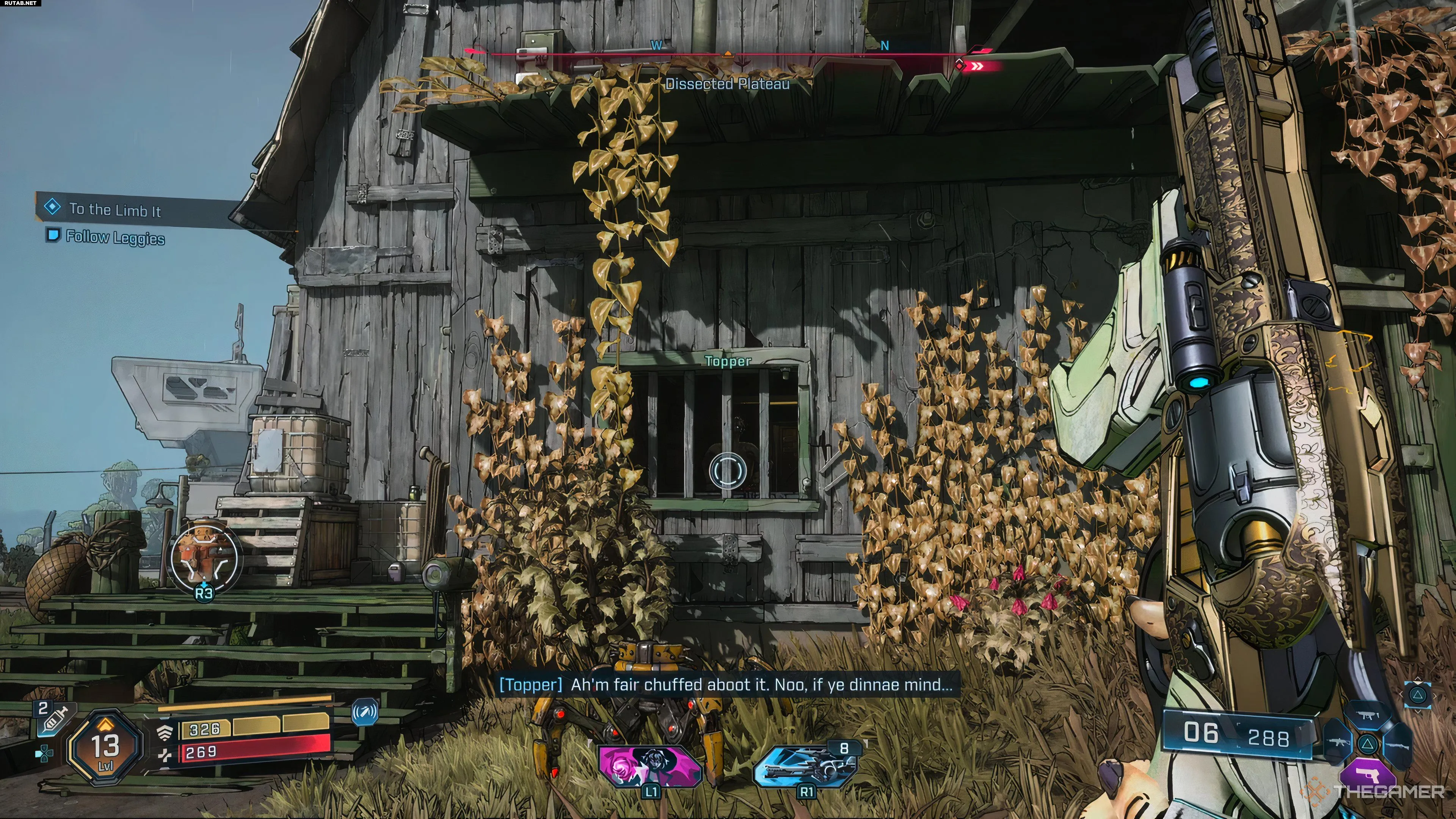 Вам нужно будет следовать за ногами, которые приведут вас к амбару на Рассеченном плато. По прибытии вы заметите Топпера в окне, умоляющего освободить его. После того как вы откроете двери, вас встретит большой и агрессивный Трампторн.