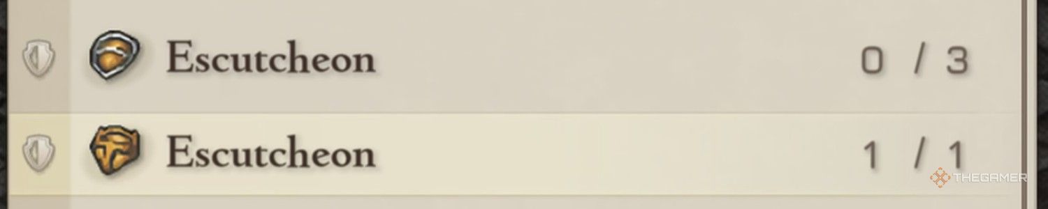 | Улучшенное копьё имеет золотой наконечник вместо серого. | Улучшенный щит имеет тёмно-золотую окантовку вместо простого щита с серебряным обрамлением. |