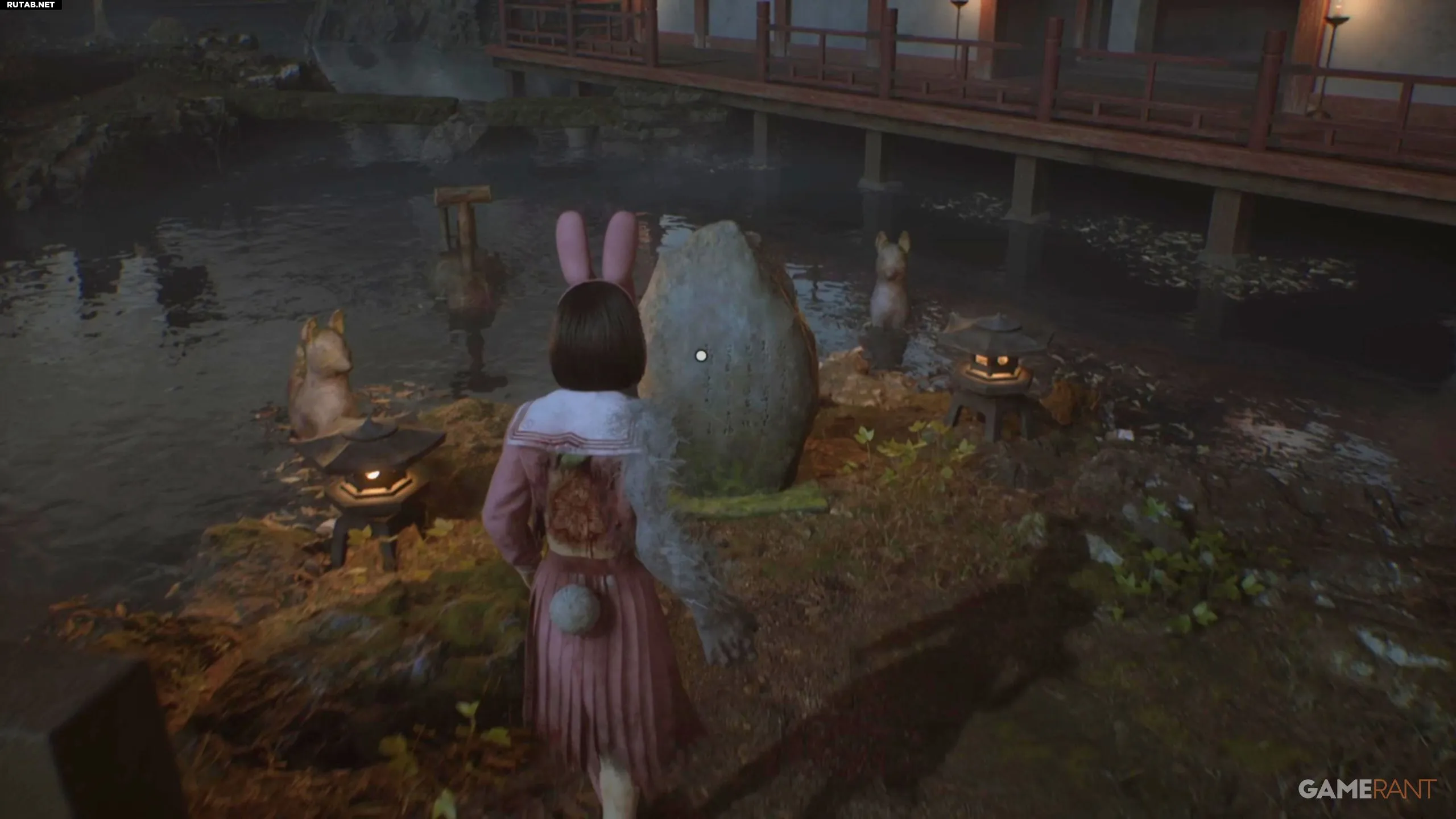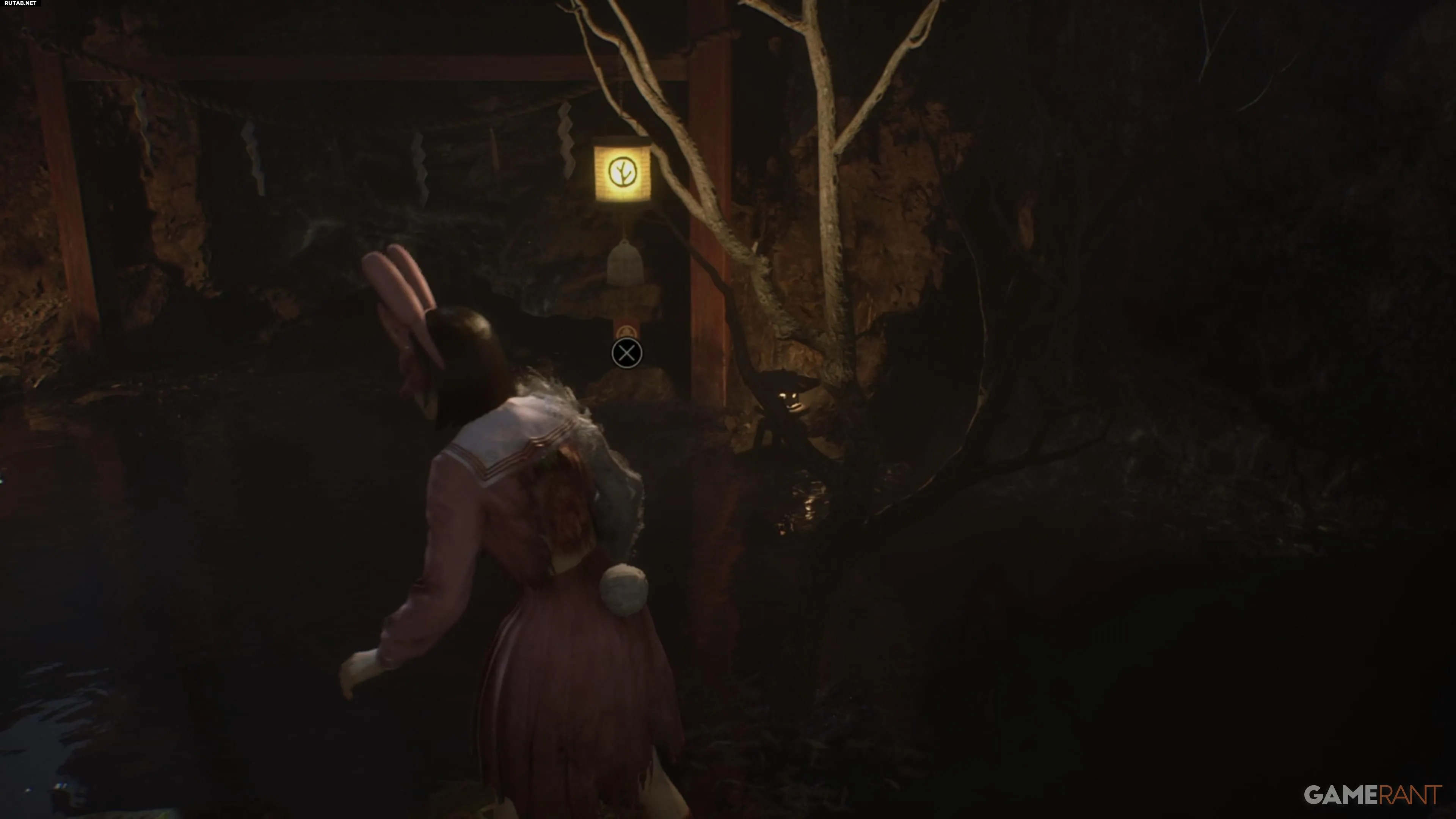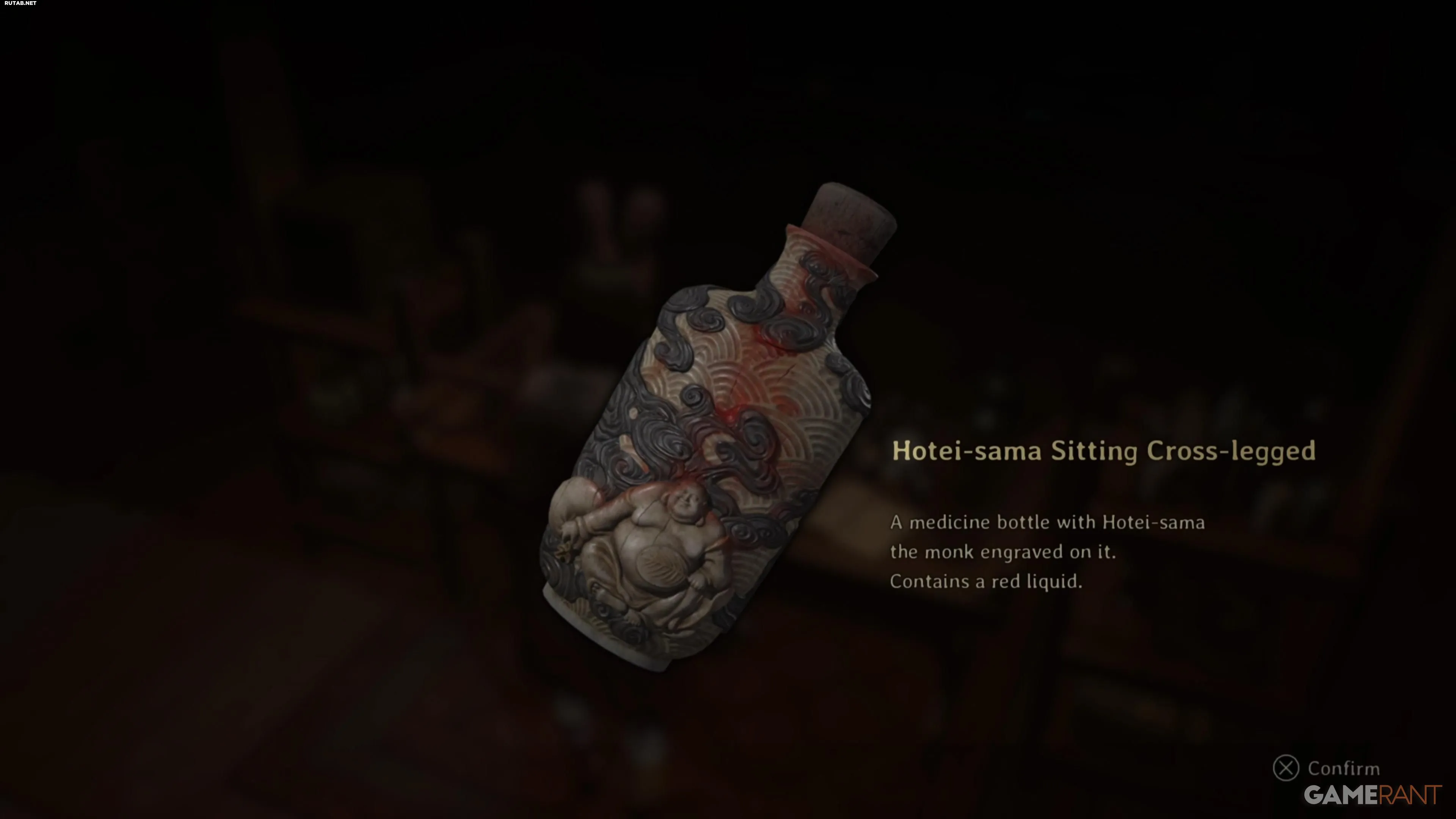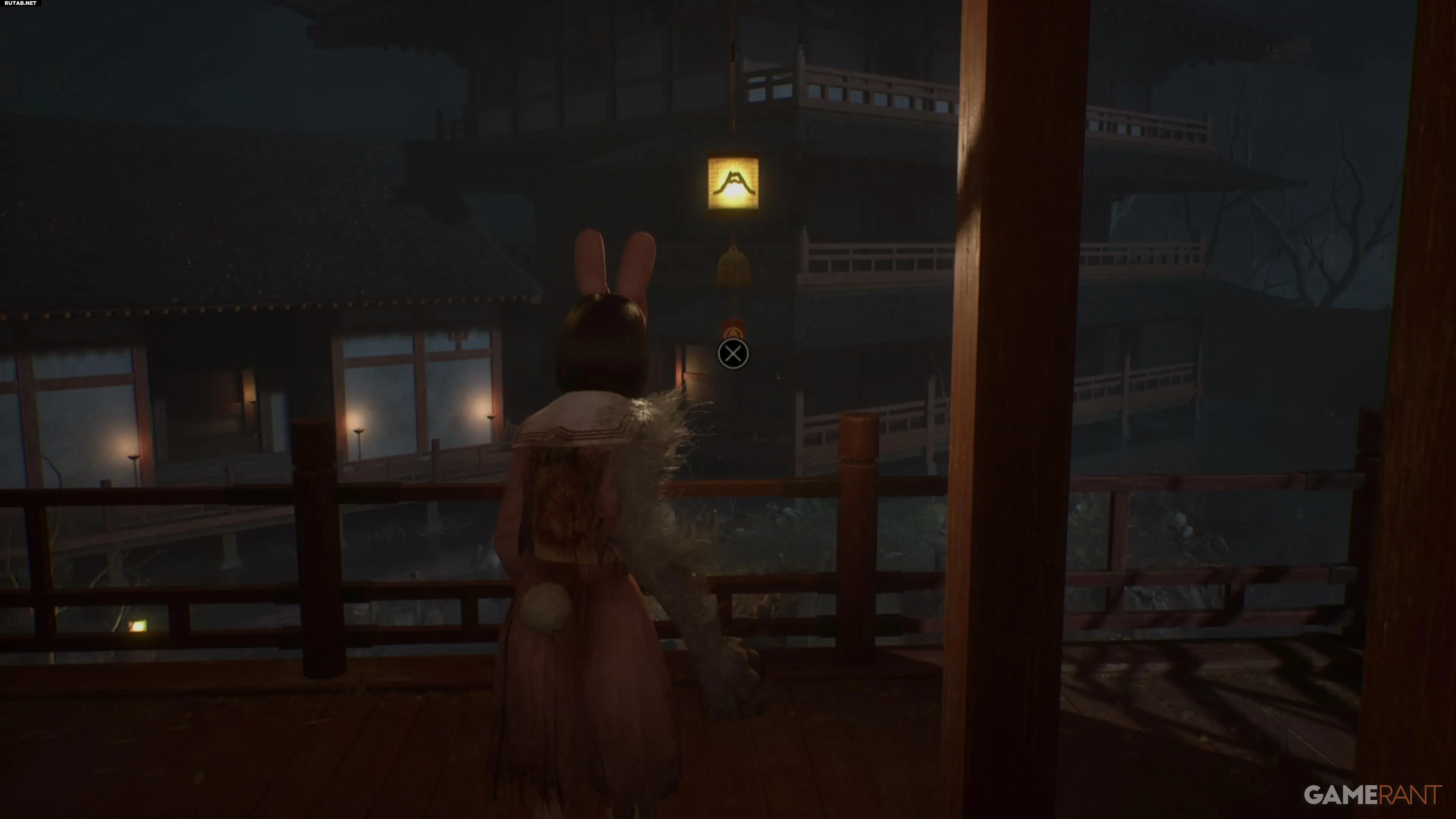 Перед решением головоломки зайдите в здание справа. Там вы найдёте улучшение персонажа и ключевой предмет — Хотэй-сама, сидящий скрестив ноги, необходимый для концовки «Свадьба лисы».