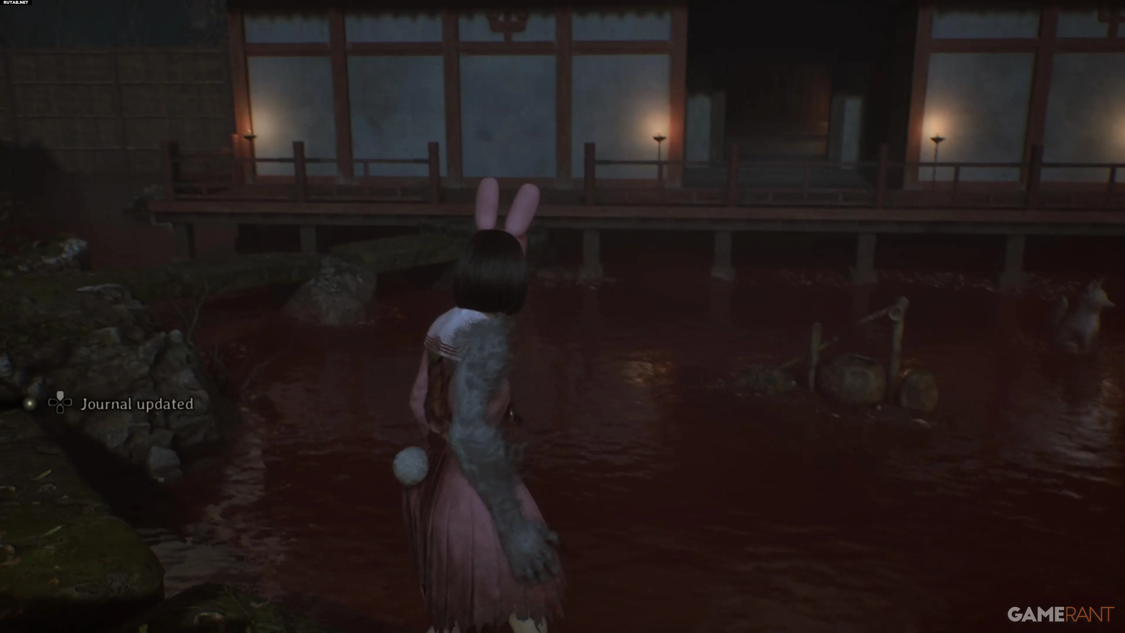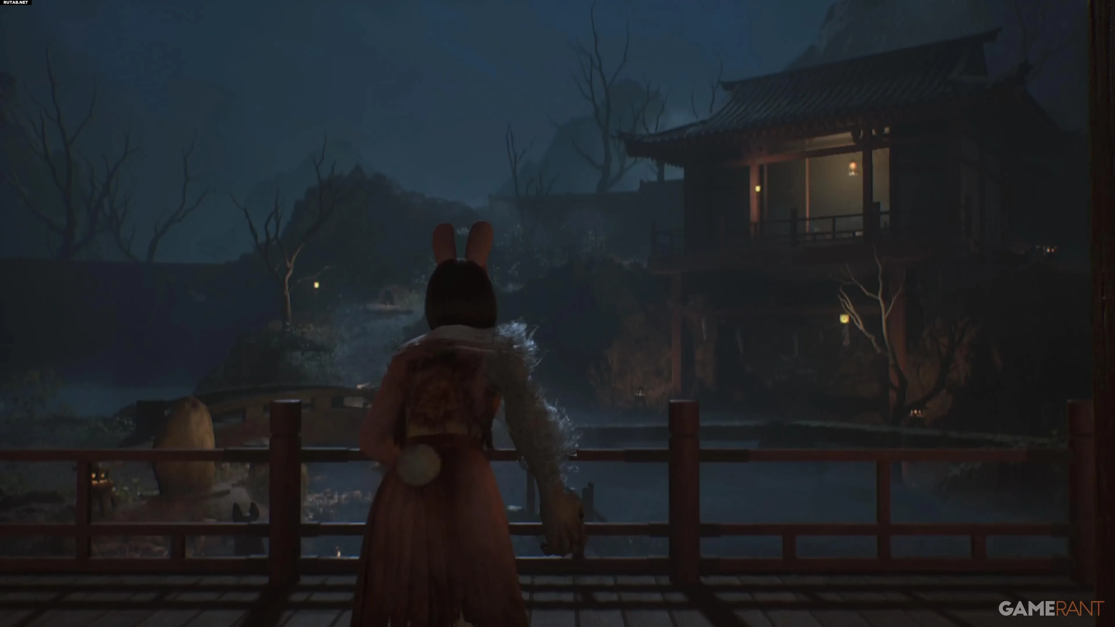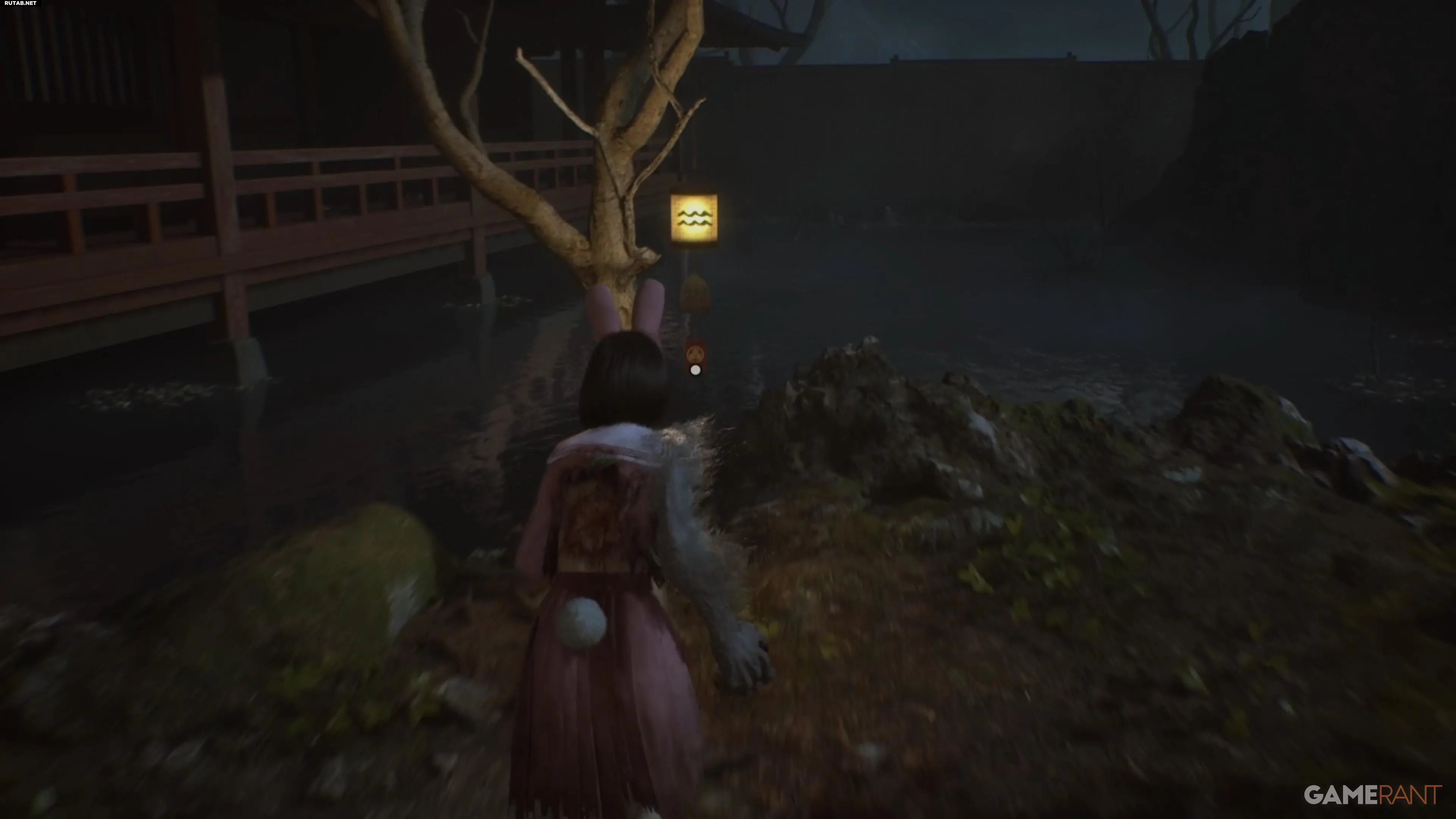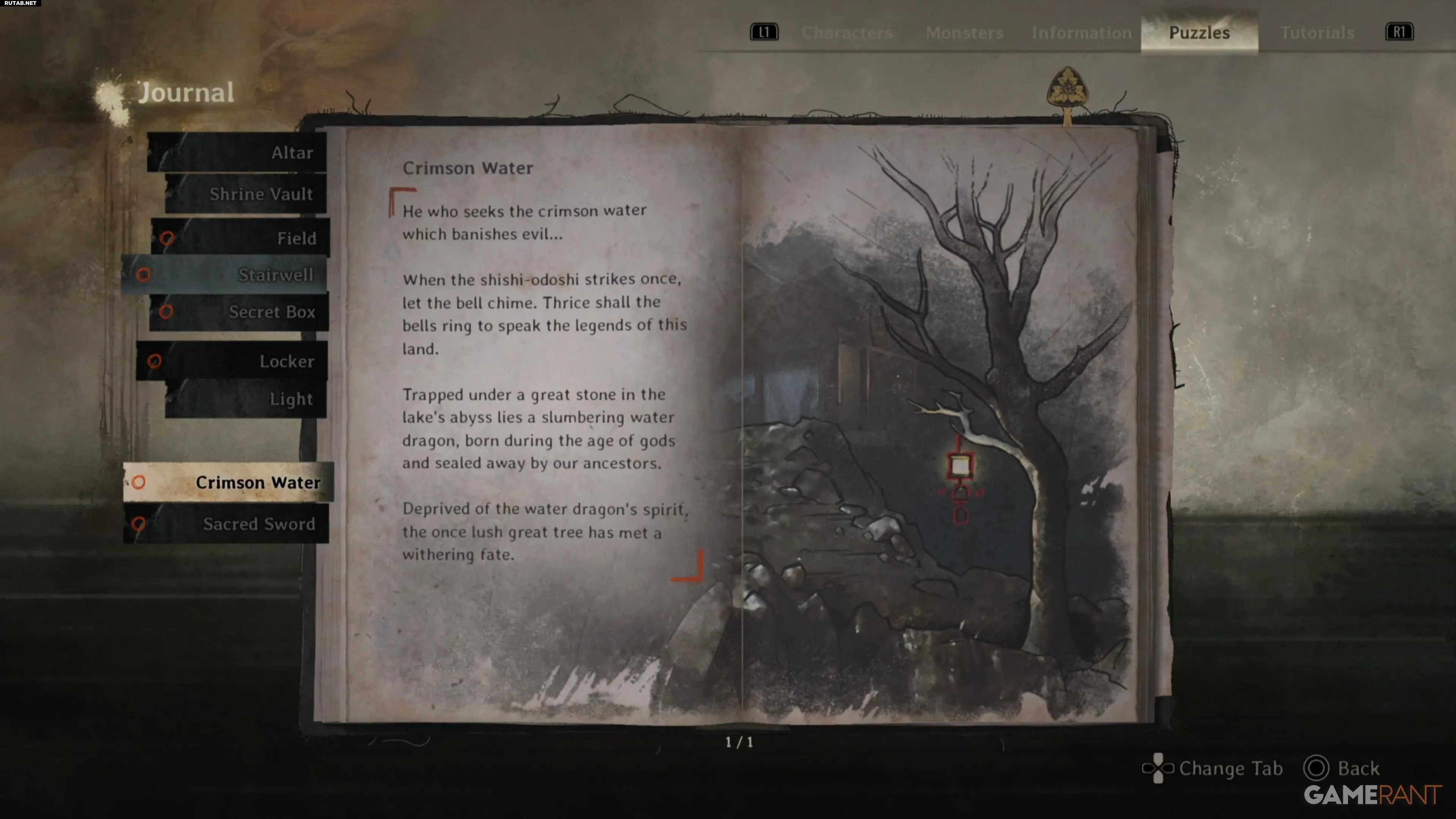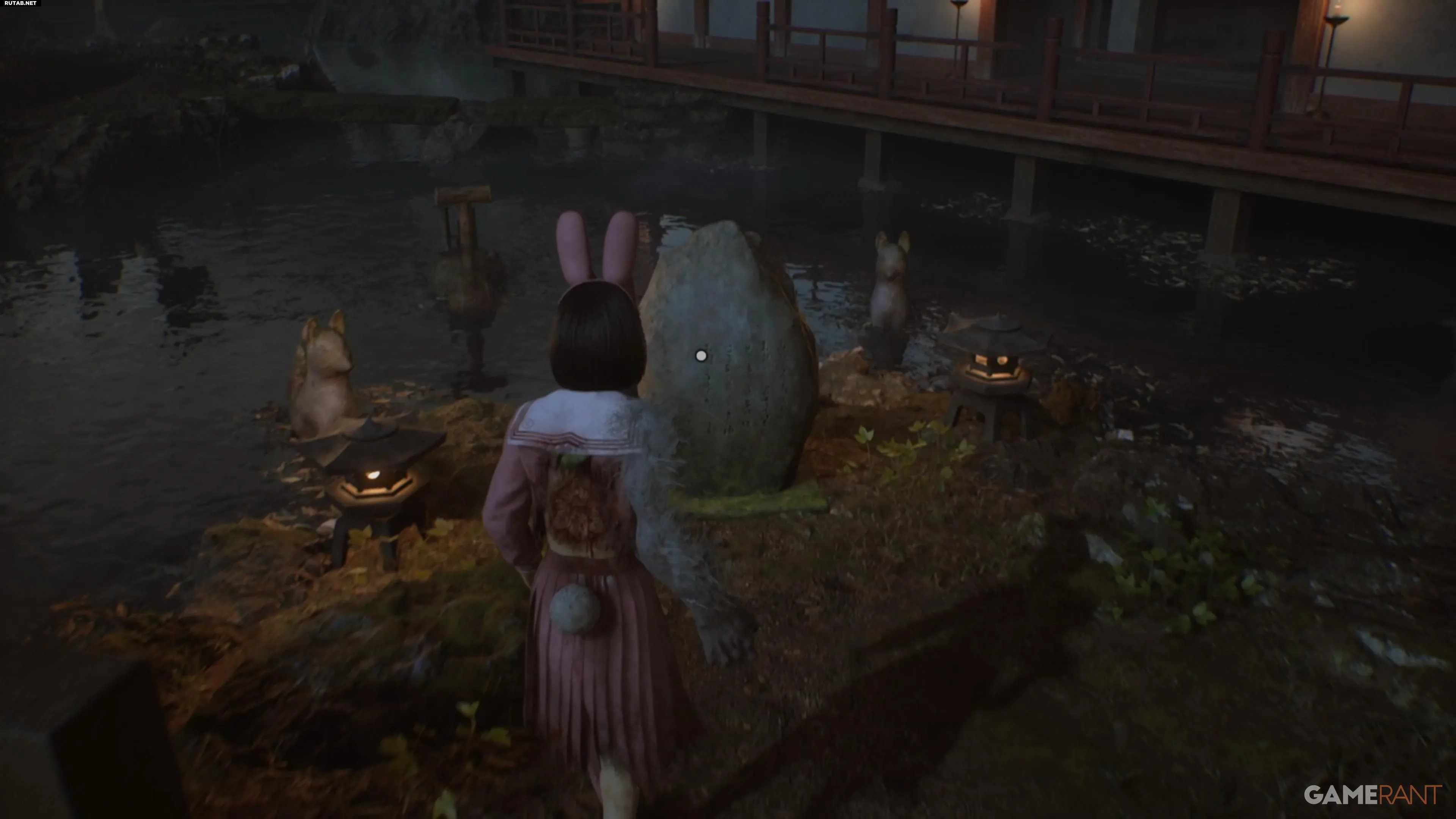 Перед решением головоломки зайдите в здание справа. Там вы найдёте улучшение персонажа и ключевой предмет — Хотэй-сама, сидящий скрестив ноги, необходимый для концовки «Свадьба лисы».