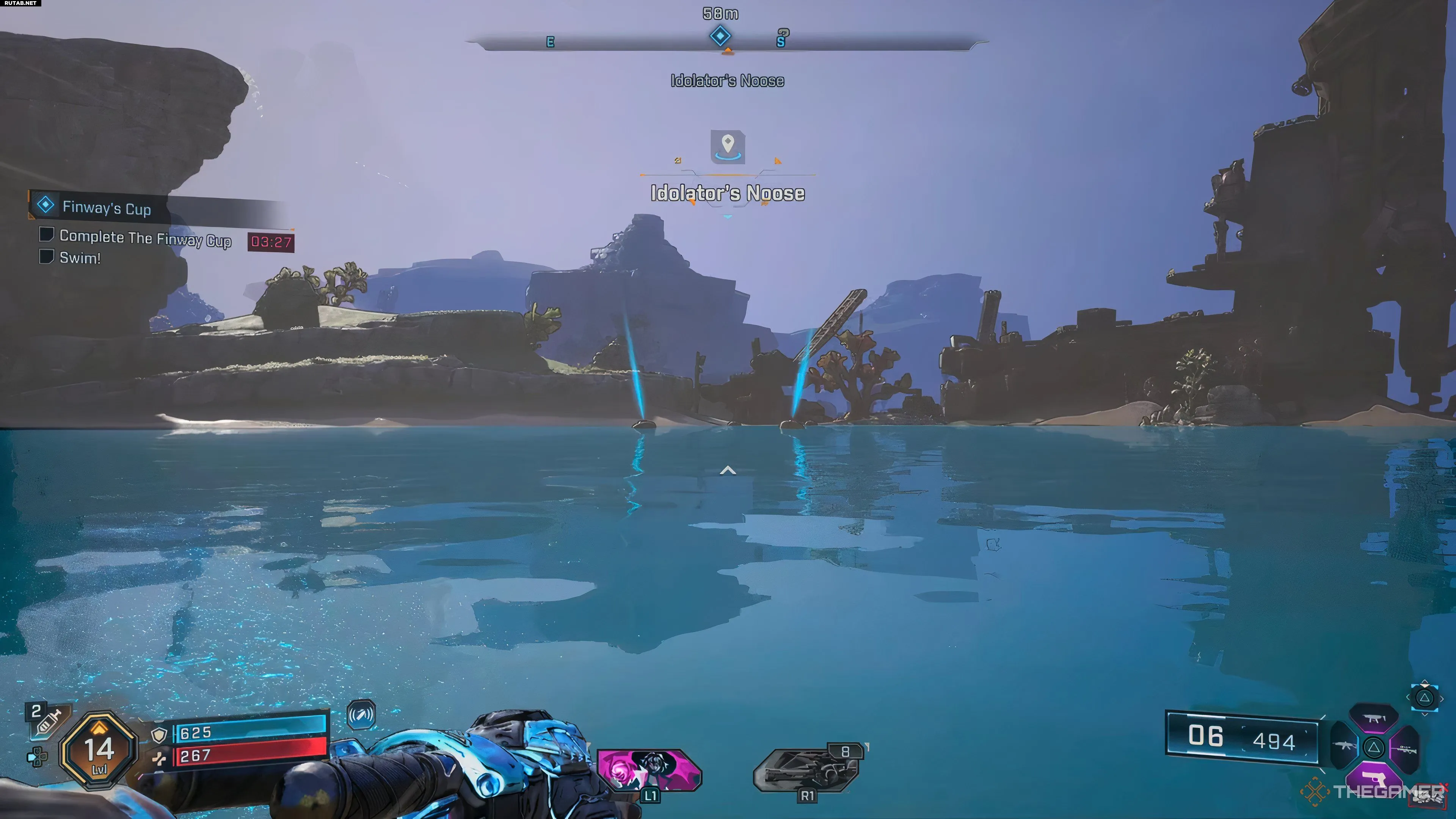 У вас есть три минуты 45 секунд на прохождение трассы, поэтому начинайте плыть, как только коснетесь воды. Путь вперед будет четко отмечен на вашем компасе, а также светящимися воротами, через которые нужно проплыть.