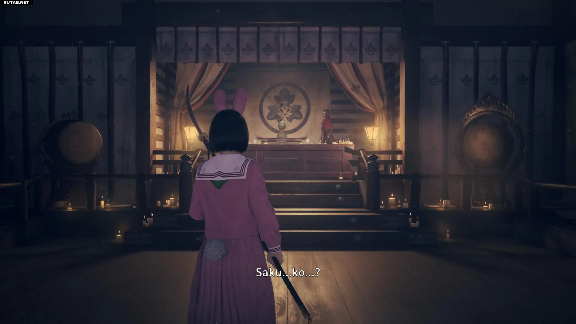 Пройдите через следующую дверь, и вскоре вы увидите фигуру, плачущую на полу. Это Сакуко — первый крупный босс игры.