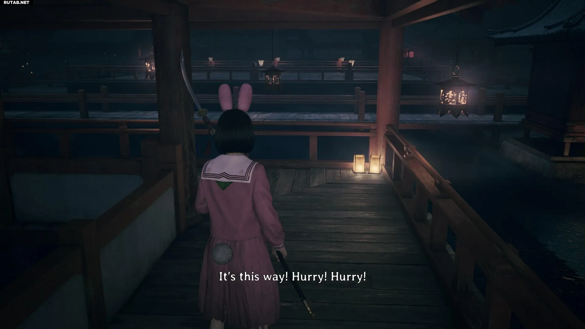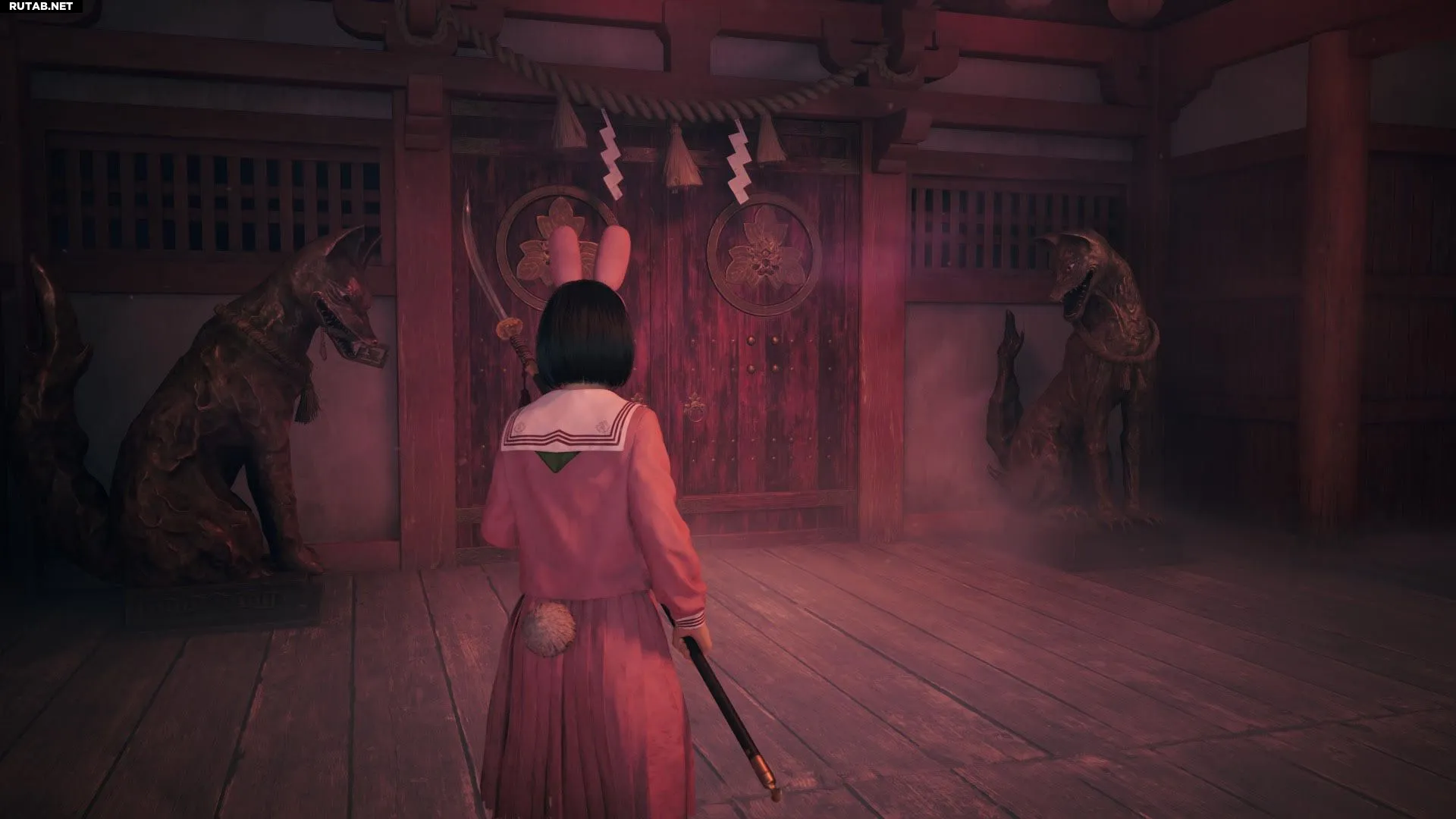 На обратном пути появится новое чудовище, но вступать с ним в бой не нужно. Просто пробегите мимо врагов, уворачиваясь от волн атакующих, которые появляются по пути. Когда вы достигнете Священной Двери, Хинако автоматически поместит Каменную Сферу в пасть статуи Инари. Это запустит новую кат-сцену и откроет следующую область.