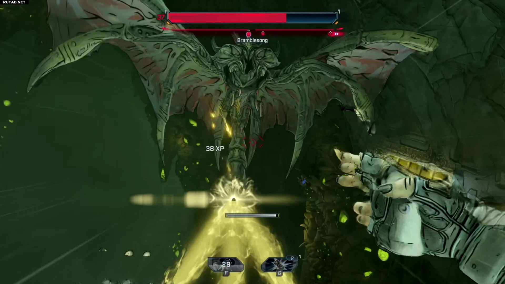 Bramblesong — это гигантский Кратч, который стреляет едкой кислотой из хвоста. Во время боя он не приземляется, поэтому оружие ближнего боя неэффективно. У него две полоски здоровья, и обе уязвимы к огненному урону. Это простая дуэль, а по арене летают мелкие Кратчи, которых можно убить, чтобы подняться, если вас «уложат».