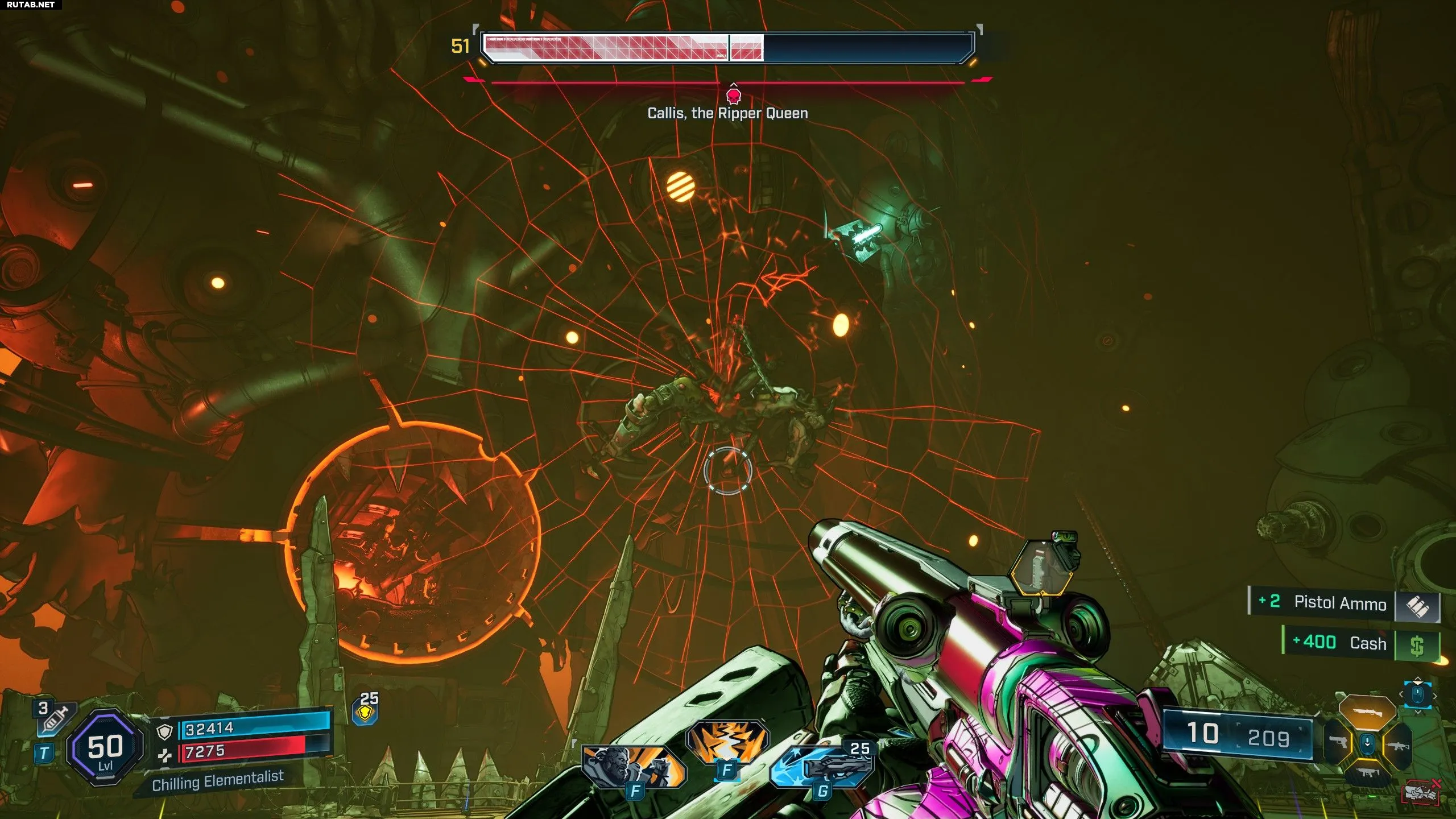Каллис дропает целую кучу предметов, и среди них особенно хорош пистолет «Покой Королевы». Это отличное оружие для любителей пистолетов — он стреляет скоростными пулями с шансом 30% создать самонаводящийся липкий снаряд. Кроме пистолета, стоит фармить Каллис ради модов классов для каждого Хранителя Убежища — они могут идеально подойти для ваших сборок.