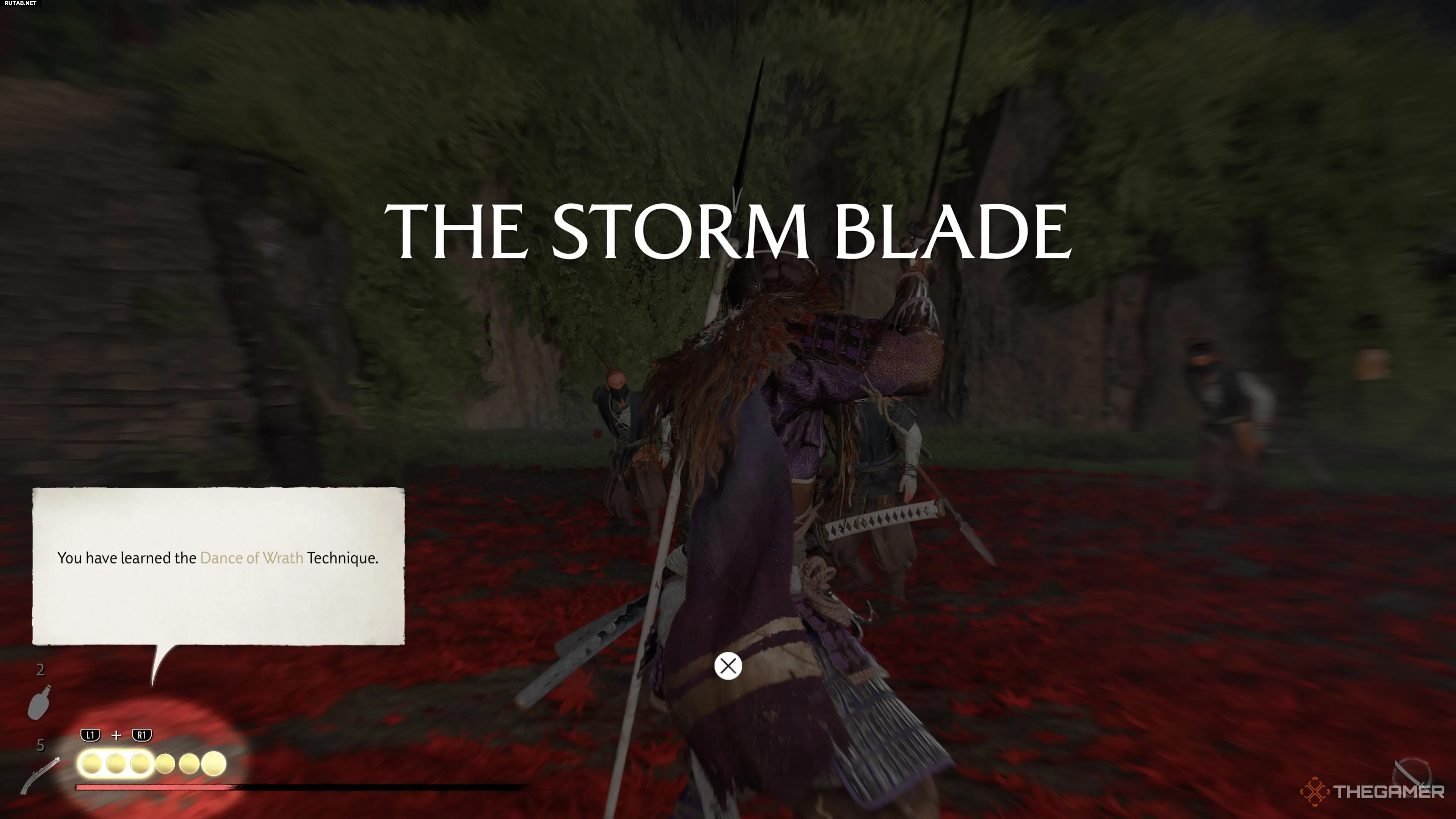 - Клинок Бури — после возвращения меча вы откроете технику Танец Гнева. После завершения задания её можно использовать без экипировки самого клинка.