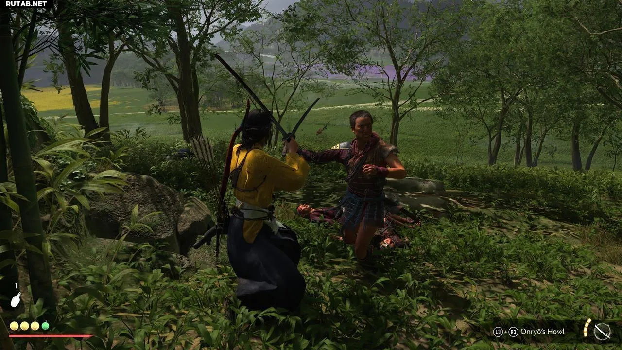 Если вы столкнетесь с многочисленными противниками, подумайте об использовании более мощных способностей. Например, Вой Онирё — одновременное нажатие L3 и R3 — заставляет Ацу кричать и пугать ближайших врагов. Это позволяет быстро расправиться с противниками, пока они приходят в себя от шока. Однако для использования Воя Онирё нужно убить четырех врагов, не получив урона, что делает увороты и парирования крайне важными.