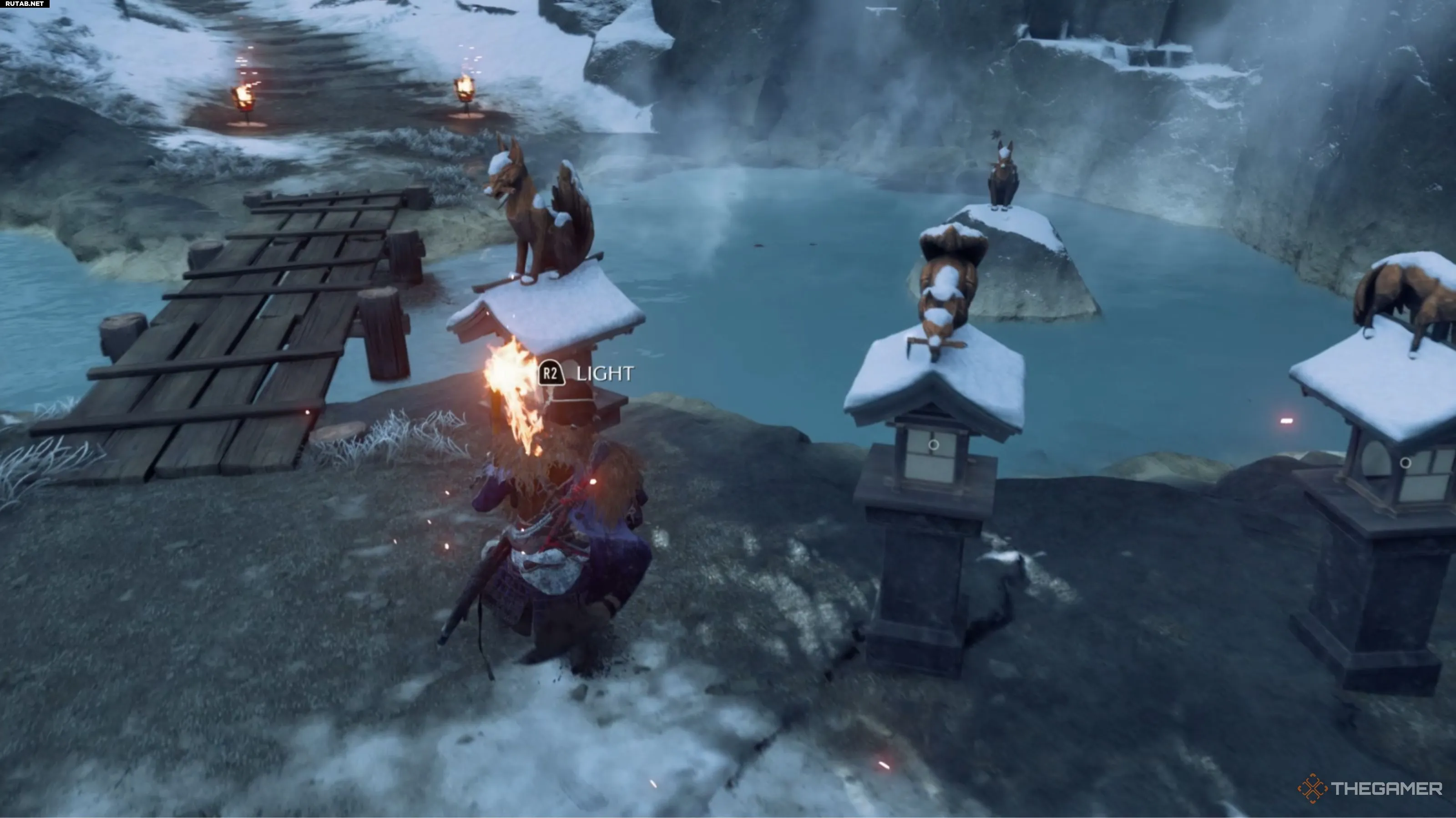 Как решить загадку лисьих статуй у святилища Снежных Родников в Ghost of Yotei
