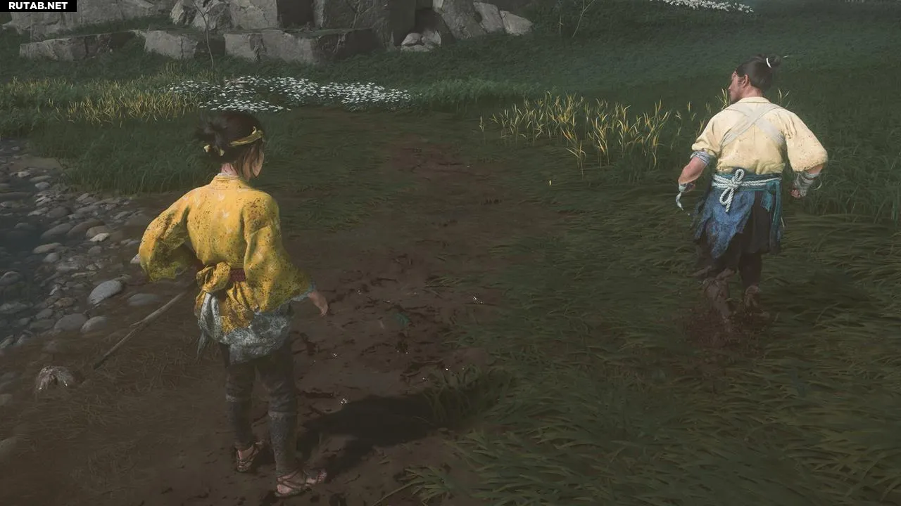 После победы над противниками следуйте за торговцем к пруду. Вспомните прошлое Ацу: