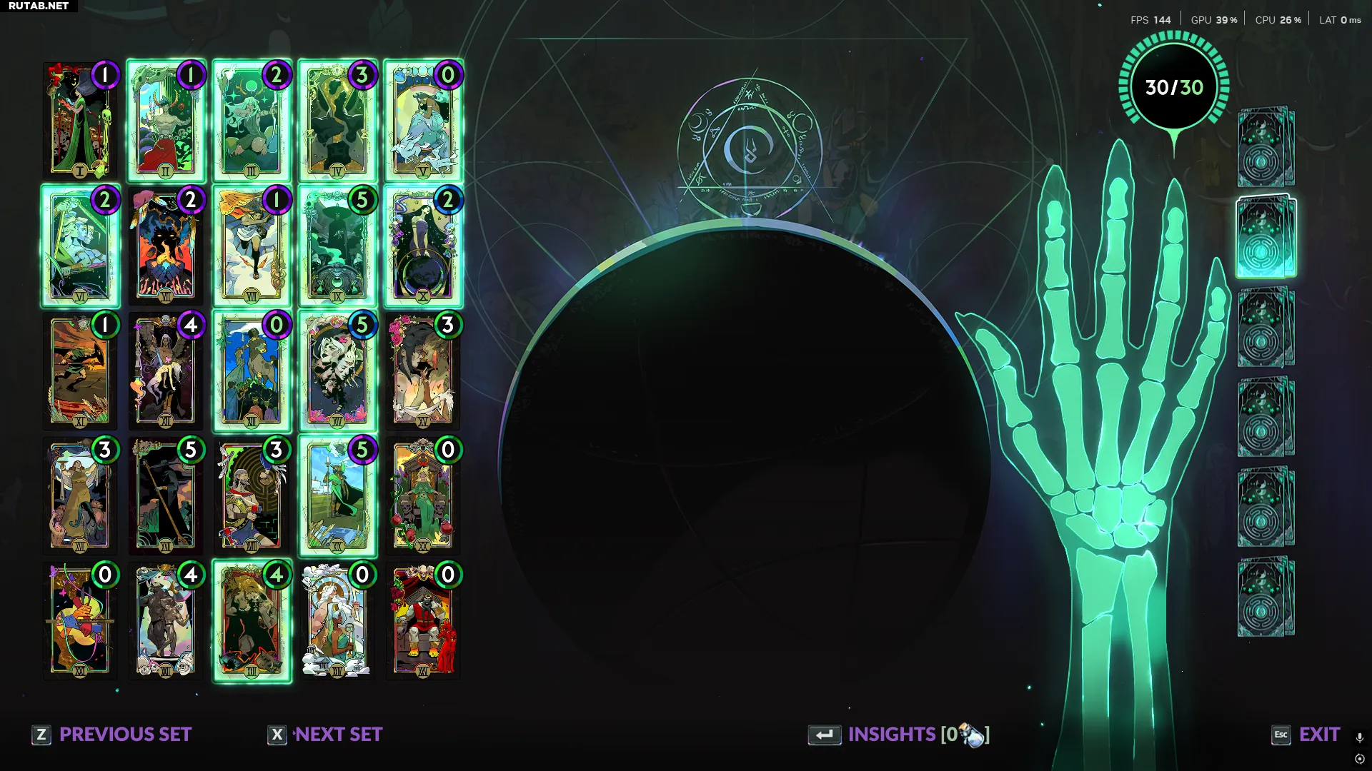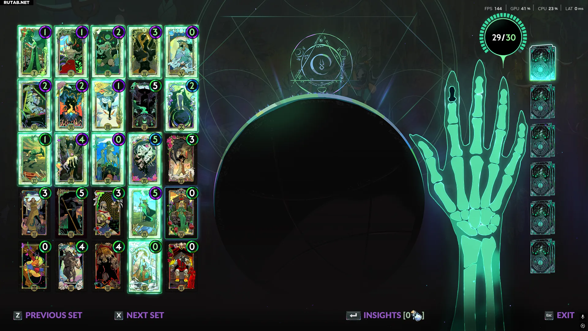 Эта сборка предлагает широкий спектр улучшений, за исключением возможности переброса благословений и стартового запаса оболов, которые предоставляют карты в левом нижнем углу меню Арканов. Что касается удачи, то карты Совершенство и Божественность обеспечат вас всем необходимым.