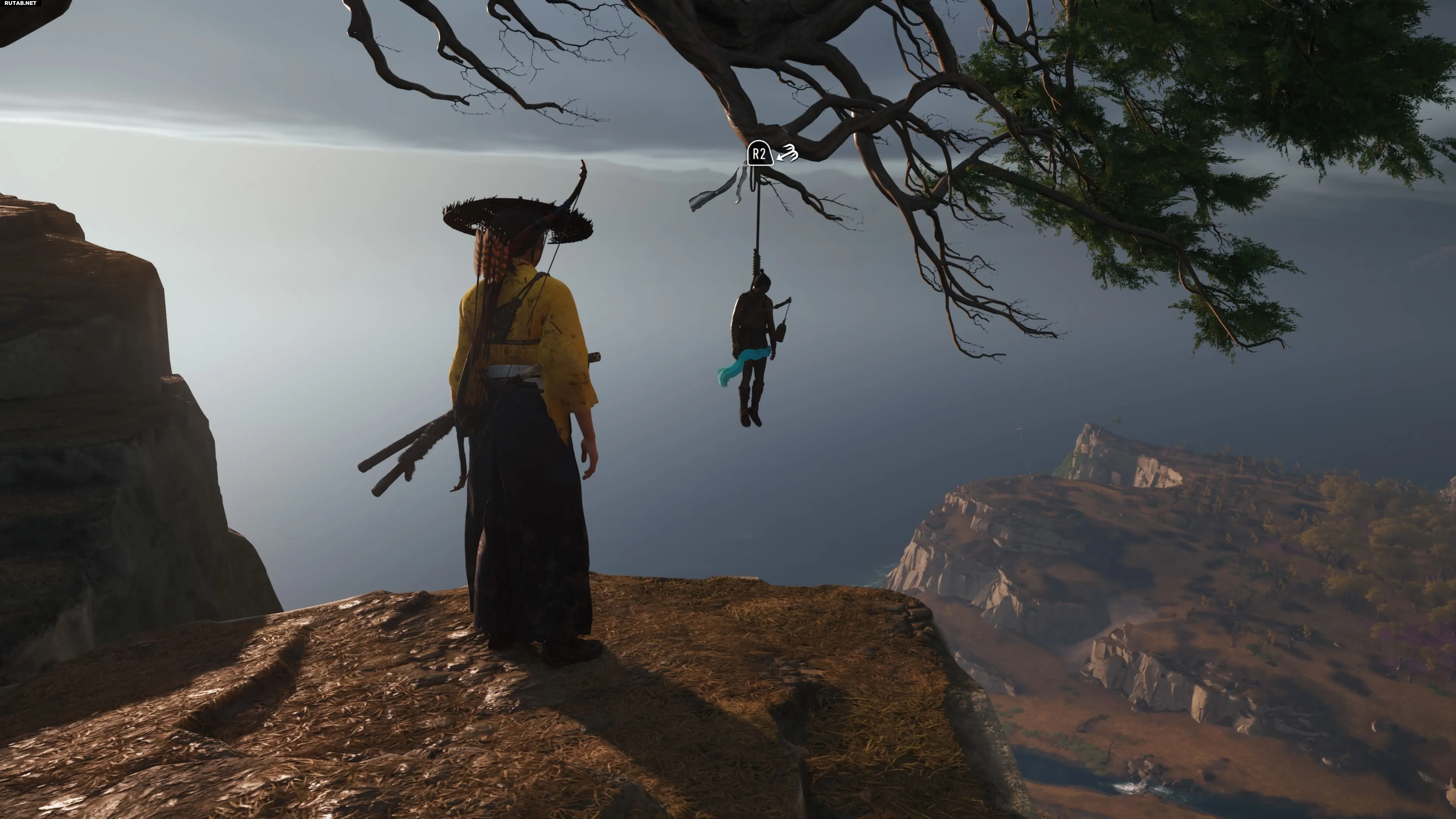 Этот колокольчик ветра добыть немного сложнее, чем остальные, поскольку потребуется паркур. Игрокам нужно отправиться в западный регион от Рассказчика Угэцу, где вы войдете на скалы прямо перед Берегом Каменной Челюсти. На карте это место находится под буквами «S» и «T» в слове «Coast». Здесь вы увидите висящий на дереве труп. Подойдите достаточно близко, чтобы, удерживая R2, использовать крюк-кошку и стащить тело вниз. Труп упадет вместе с колокольчиком ветра, поэтому просто посмотрите вниз, найдите безопасный путь, спуститесь по скале на каменную тропу, заберите колокольчик и поднимитесь обратно.