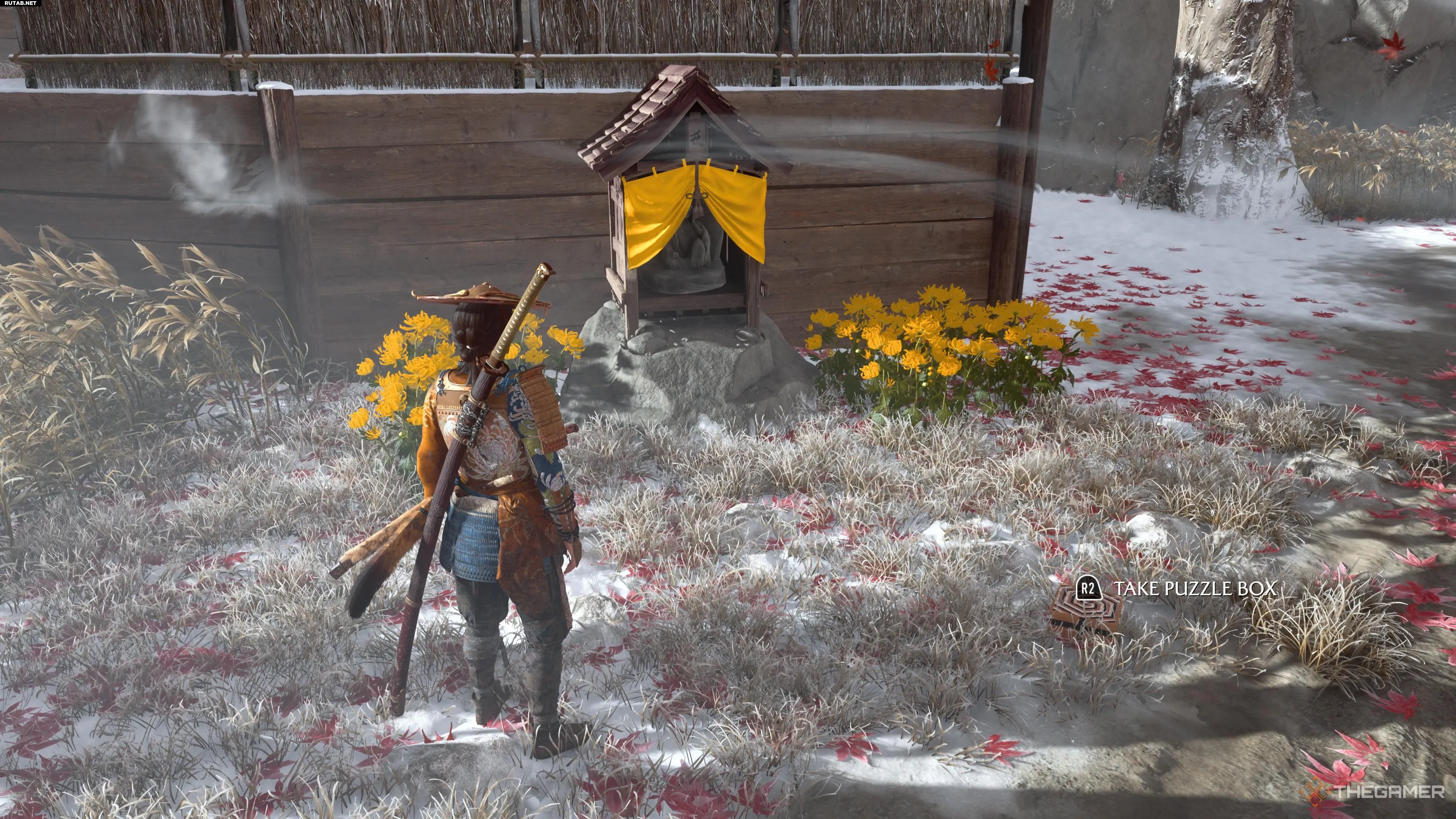 Если вам не хватает одной головоломки, скорее всего, это именно она. Её можно найти не у алтаря кицунэ и не в логове Девяти Хвостов, а рядом с телом солдата под импровизированным навесом небольшого лагеря. Точное местоположение соответствует букве «Р» в названии Леса Сакуру на карте.