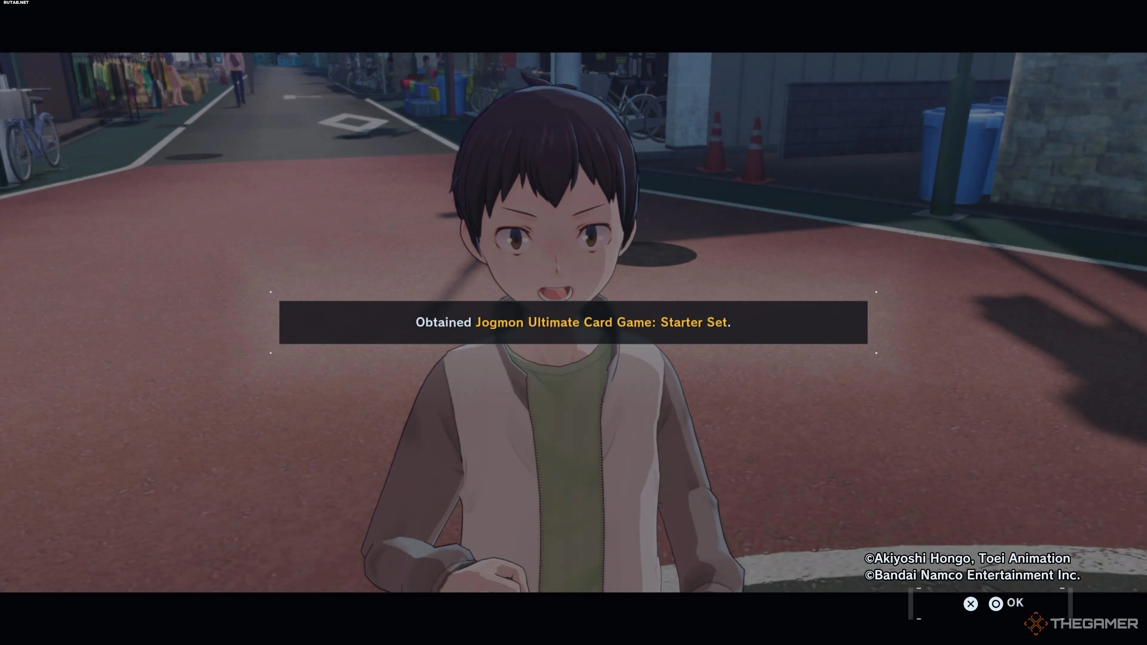 Малыш передаст вам Стартовый набор Jogmon Ultimate Card Game, в котором достаточно карт, чтобы начать играть. Он также является противником, и у него есть несколько карт, которые можно выиграть, поэтому разумно сыграть несколько партий. К счастью, он также один из самых лёгких противников, потому что его собственные карты ненамного мощнее вашей базовой колоды.