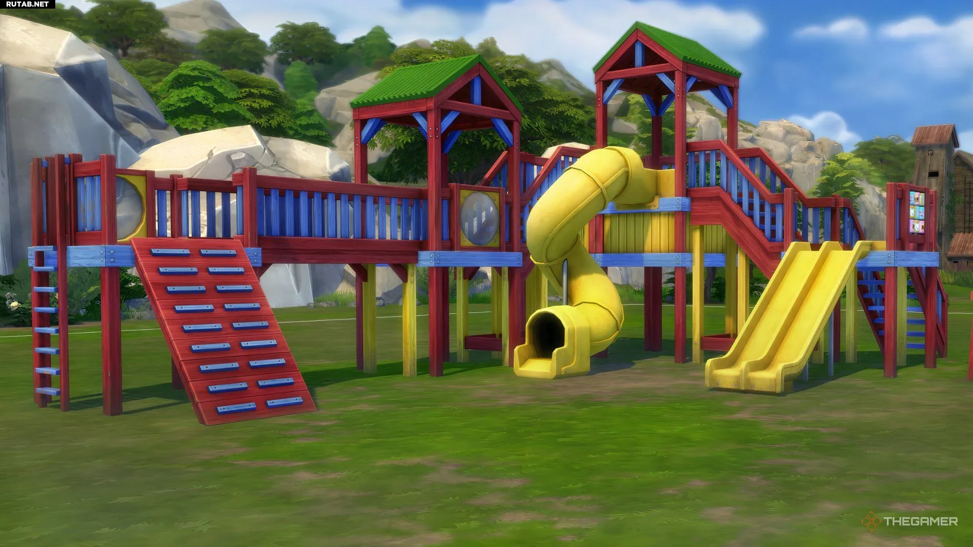 В The Sims 4: Adventure Awaits появилось множество новых занятий для симов всех возрастов. Одно из них — новое игровое оборудование для детских площадок. Помимо качелей и горки, в игре представлена модульная система для создания лазательных конструкций.