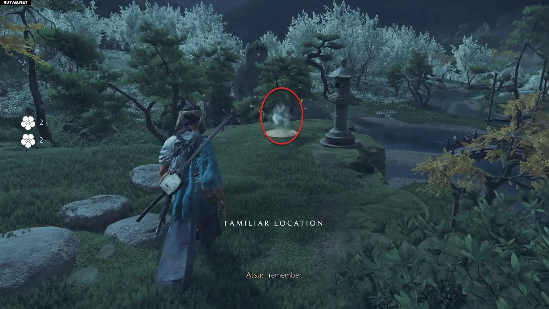 Наконец, после того как Ацу посмотрит на выросших за годы рыб, последнее воспоминание появится прямо напротив её текущего местоположения. Подойдите туда и вновь погрузитесь в прошлое, где Ацу с матерью посадили вместе саженец.