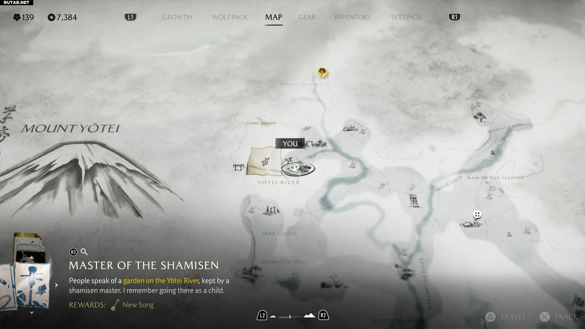 Чтобы начать квест «Мастер сямисэна» в Ghost of Yotei, отправляйтесь в сад на реке Ётей. Он расположен к северу от Леса Шикотсу и Нефритовой Рощи, прямо к востоку от горы Ётей.