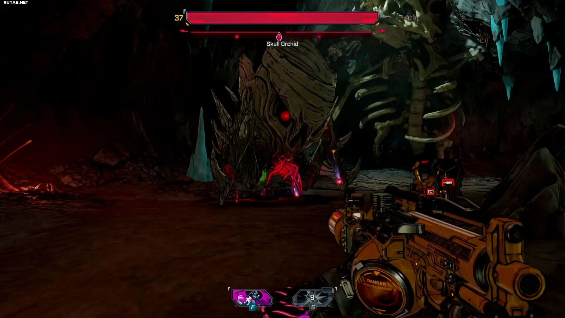 Склл Орхид ждет вас в конце шахты. Это огромная тварь с черепом на спине, но удивительно, что у нее всего одна красная полоса здоровья. Ее можно быстро уничтожить огнестрельным оружием или сконцентрировать огонь на красных щупальцах, торчащих из пасти черепа — это ее слабое место.