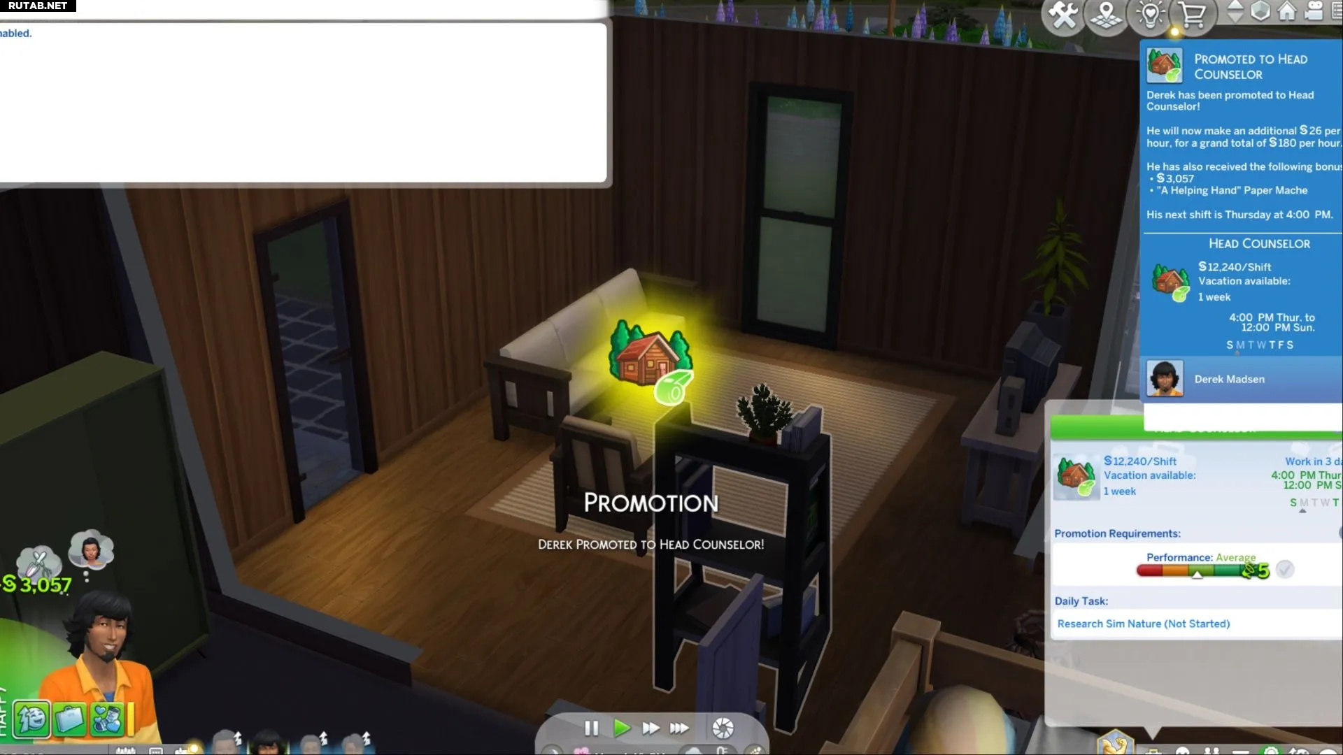 Дополнение добавляет карьеру «Работник парка». Используйте эти команды для продвижения по службе: