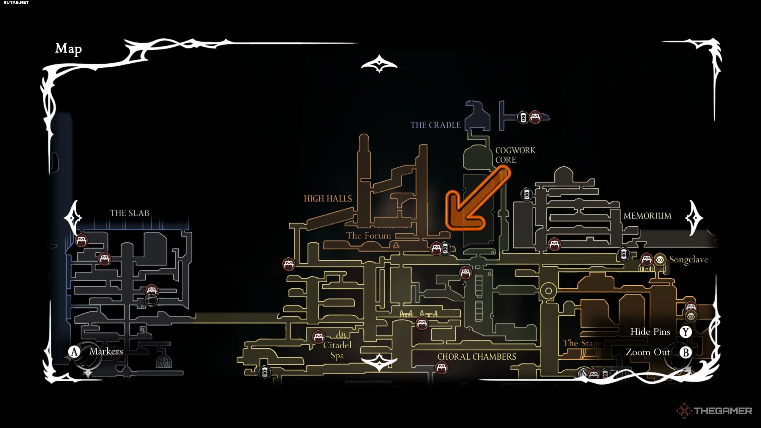 - Первую часть можно найти, как только вы попадёте в Хоровые палаты после области Нижние цеха. Направляйтесь в левую часть Хоровых палат, и вы найдёте вертикальный путь, соединяющий несколько комнат прямо над Спа Цитадели. Эту часть можно найти в средней комнате слева.