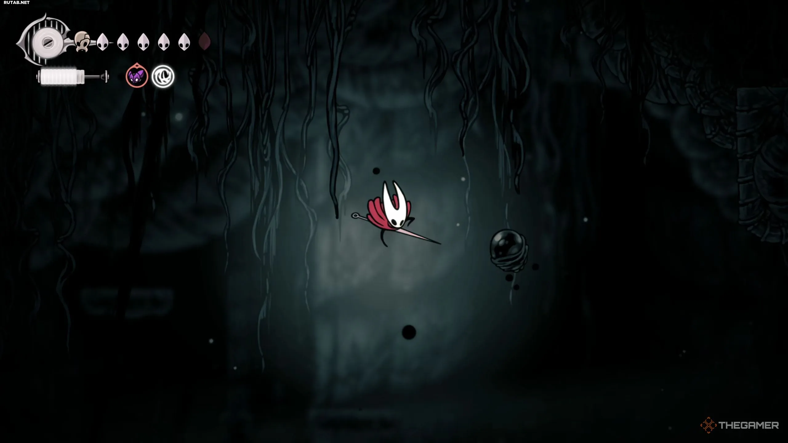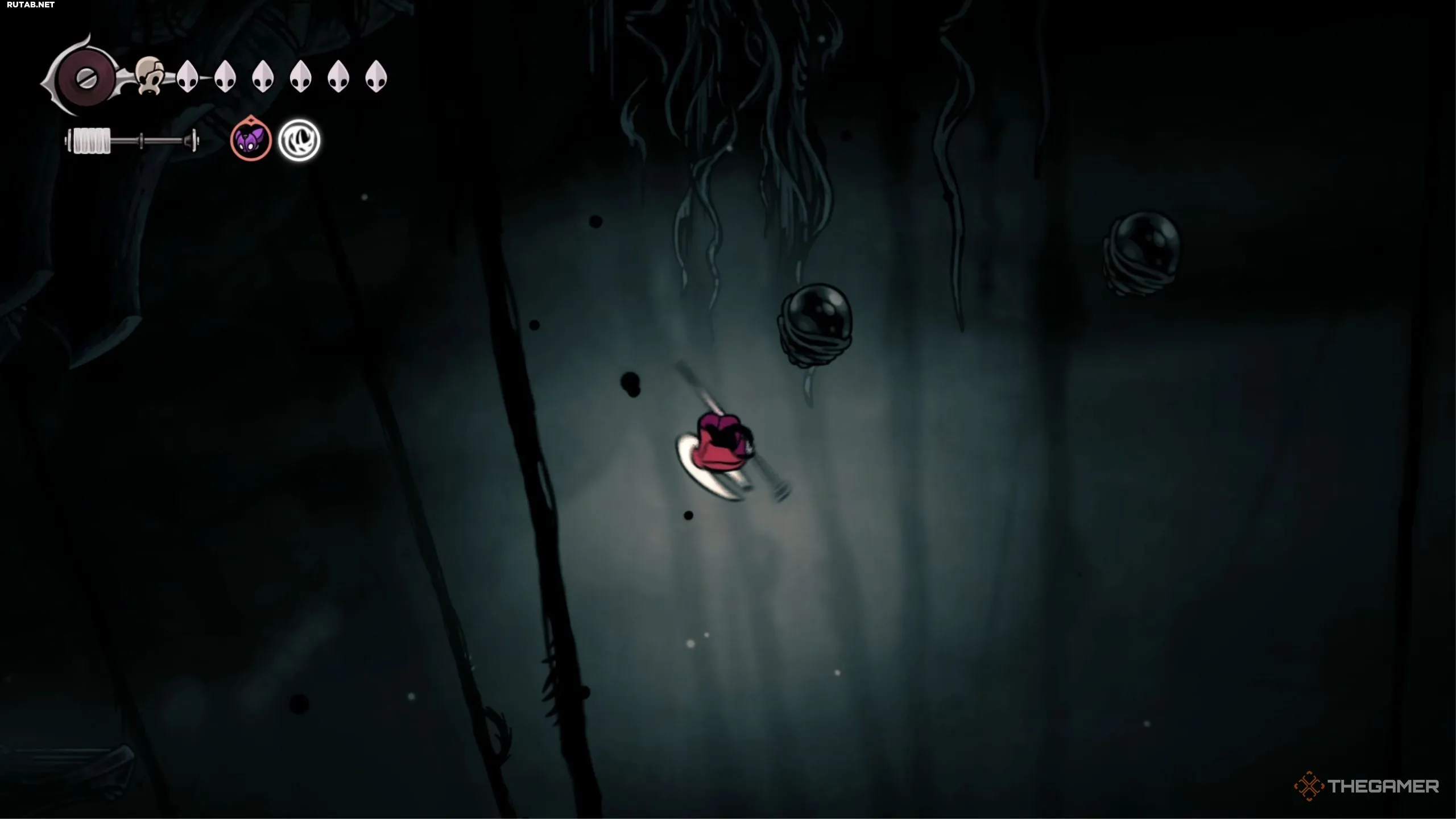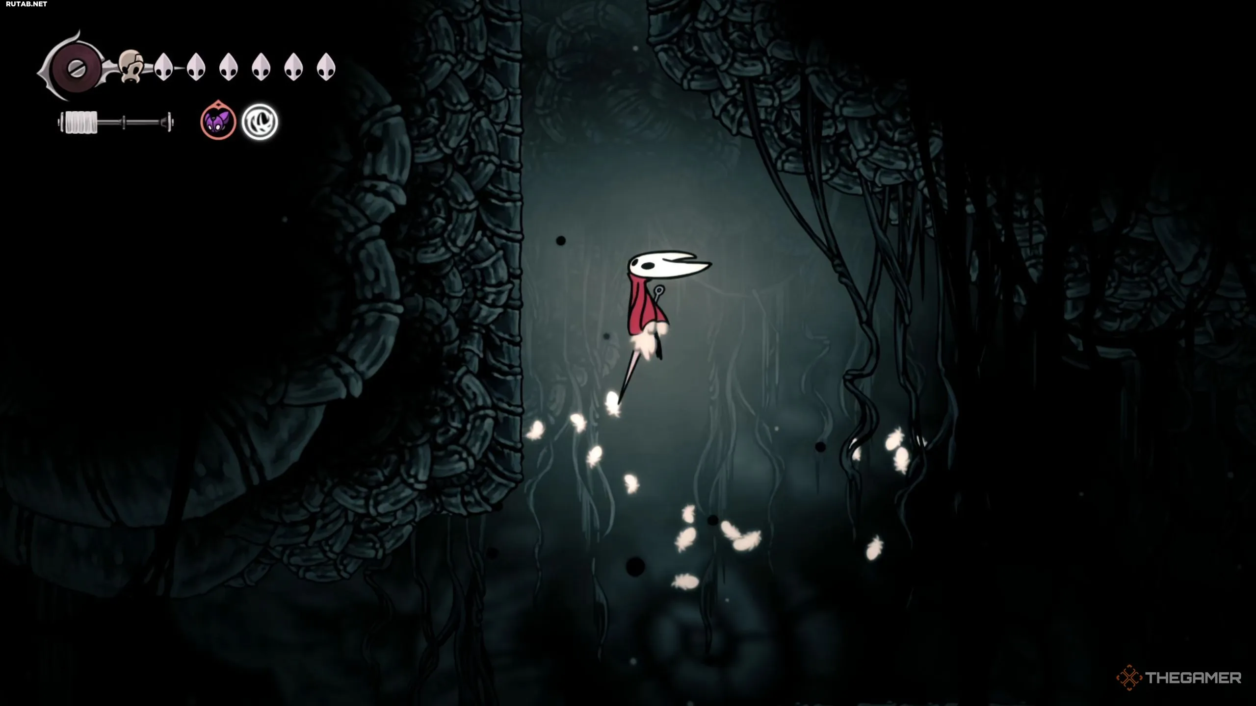 В этом Ткачедоме можно просто спрыгнуть вниз в отверстие, а когда путь будет заблокирован, свернуть на небольшую тропу слева, чтобы спуститься ещё ниже. Внизу вы найдёте статую, которая дарует способность Окрыляющий Шёлк, позволяющую вернуться к самой вершине Бездны. Просто покиньте Ткачедом и направляйтесь к скамье в нижней части этой локации.