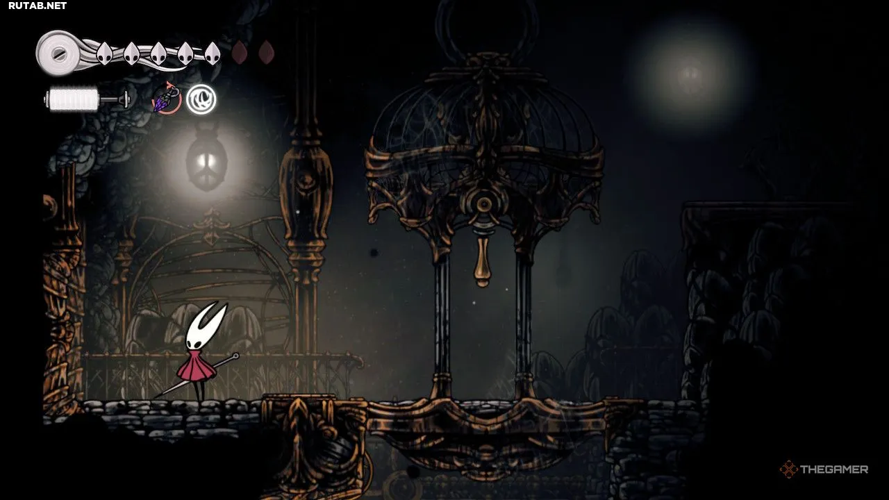 Остерегайтесь шипов прямо под станцией лифта! Следует подпрыгнуть и использовать Плащ бродяги (парящий полет), чтобы аккуратно проскользнуть над первым рядом шипов и подготовиться к рывку через следующий набор.