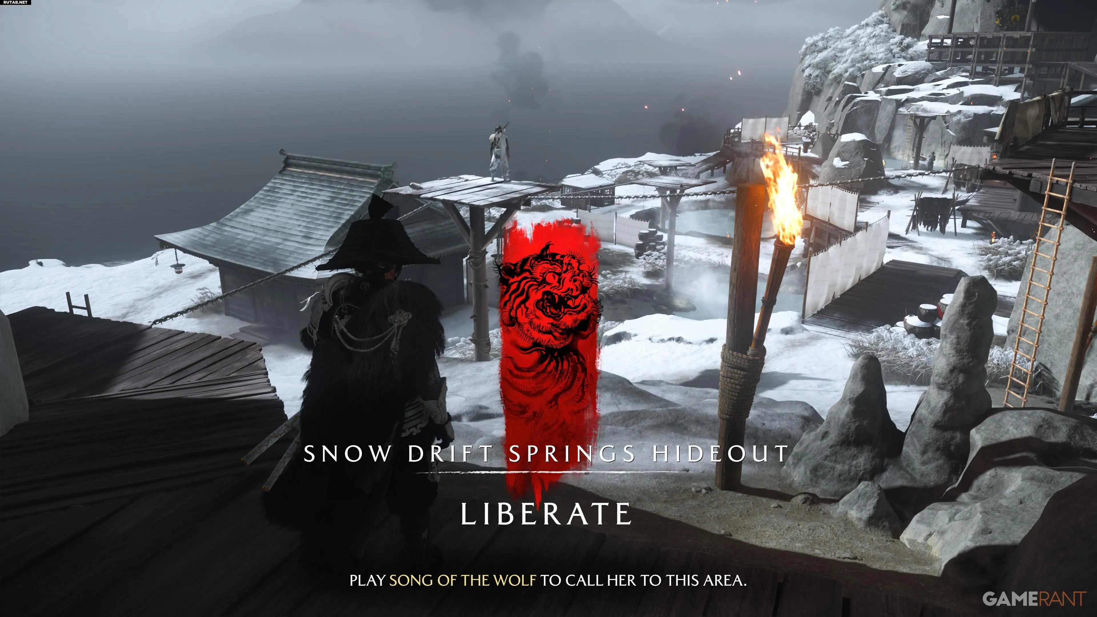 Пройдя через дверь, вы попадёте в убежище Снежных Родников, заполненное членами Девяти Хвостов. Устранив противников и освободив пленника, направляйтесь к выходу, где вас ждёт ещё одна головоломка с лисами.