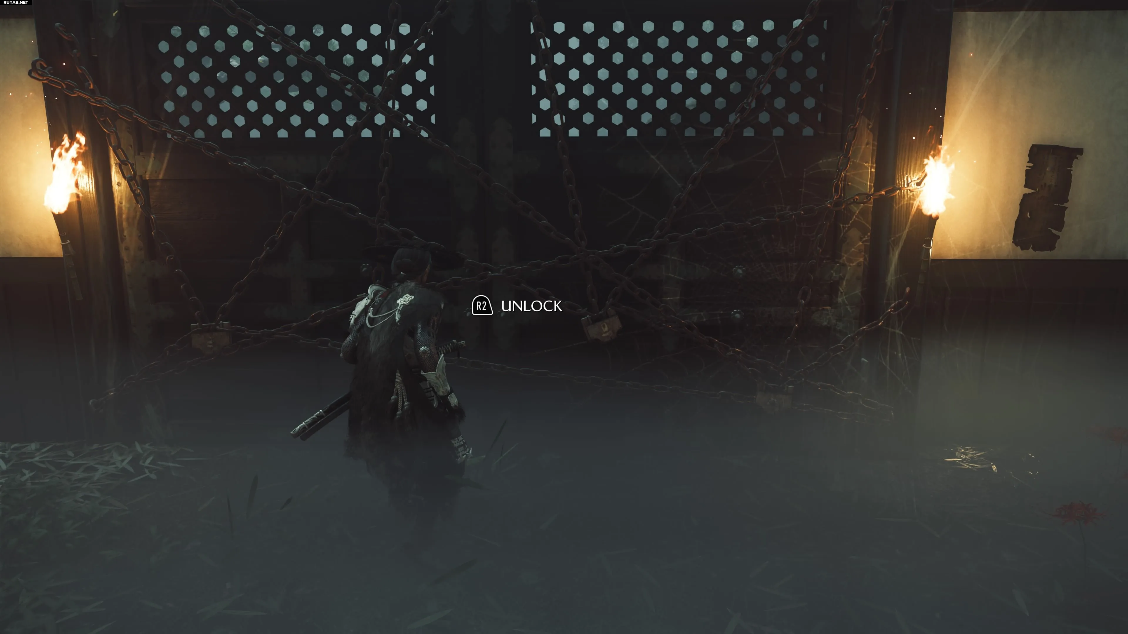 Получив все четыре ключа, вернитесь к запертым вратам Заброшенного Поместья Томинага. Взаимодействуйте с ними, чтобы открыть доступ внутрь. Вы можете осмотреть здание для дополнительной информации о лоре, но это необязательно. Всё, что нужно сделать — это пройти направо через открывающуюся дверь, которая ведёт на тренировочный двор. Следуйте по линейному пути через двор, пока не обнаружите бамбуковую стену, которую можно разрушить с помощью вашего крюка. Протиснувшись через образовавшуюся щель, вы окажетесь лицом к лицу с Генералом Паучьей Лилией.