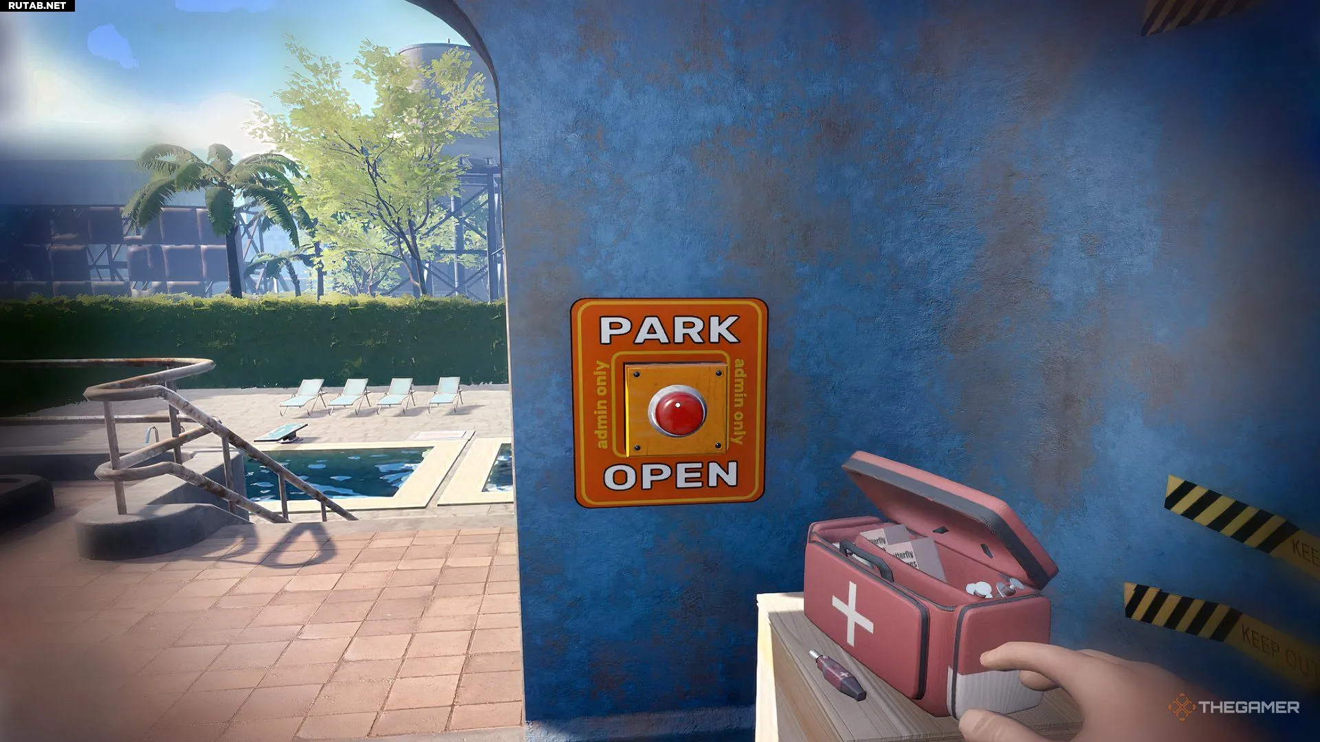 Протокол спасения | Спасите травмированного посетителя с помощью инъектора. | Простой способ: пусть посетитель упадёт с горки на пол, а не в бассейн, и будьте наготове с инъектором рядом с аптечкой. |