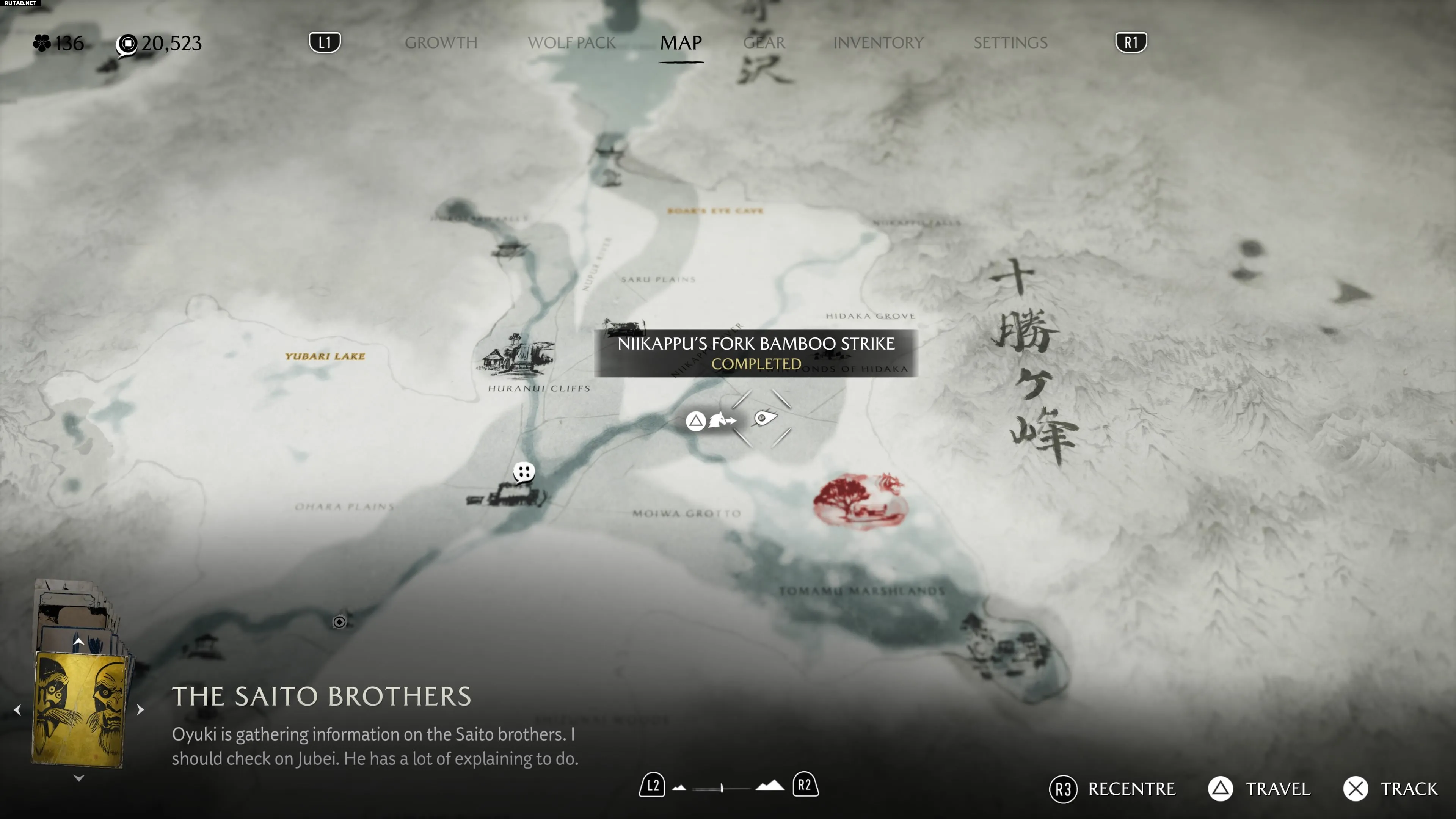 Двигайтесь дальше на север равнины Исикари, чтобы добраться до реки Румой. Испытание бамбука расположено на холме между буквами «O» и «I» на карте. Вам придётся попросить местного поселенца уйти с пути — это легко сделать, либо предложив ему 200 монет, либо просто вежливо попросив. Не волнуйтесь, это дружеская просьба, и вы не приобретёте нового врага.