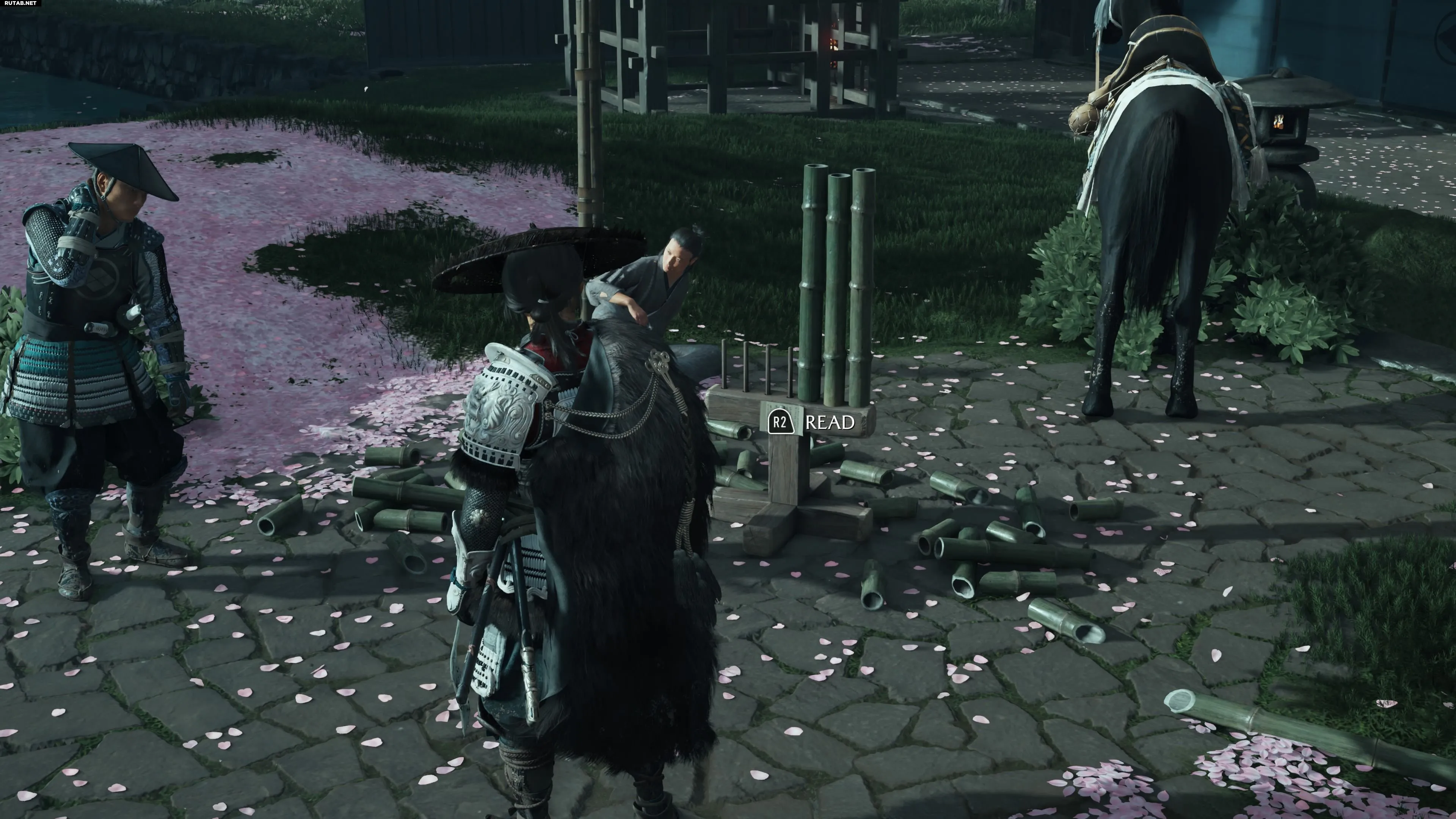 Вы попадете в лагерь Мацумаэ вместе с Дзюбэем во время основного задания «Они». Там самурай из клана Мацумаэ бросит вам вызов, предложив продемонстрировать свою силу через испытание бамбука. За его прохождение вы получите новый стильный головной убор и возможность поставить Дзюбэя в неловкое положение перед его сослуживцами.