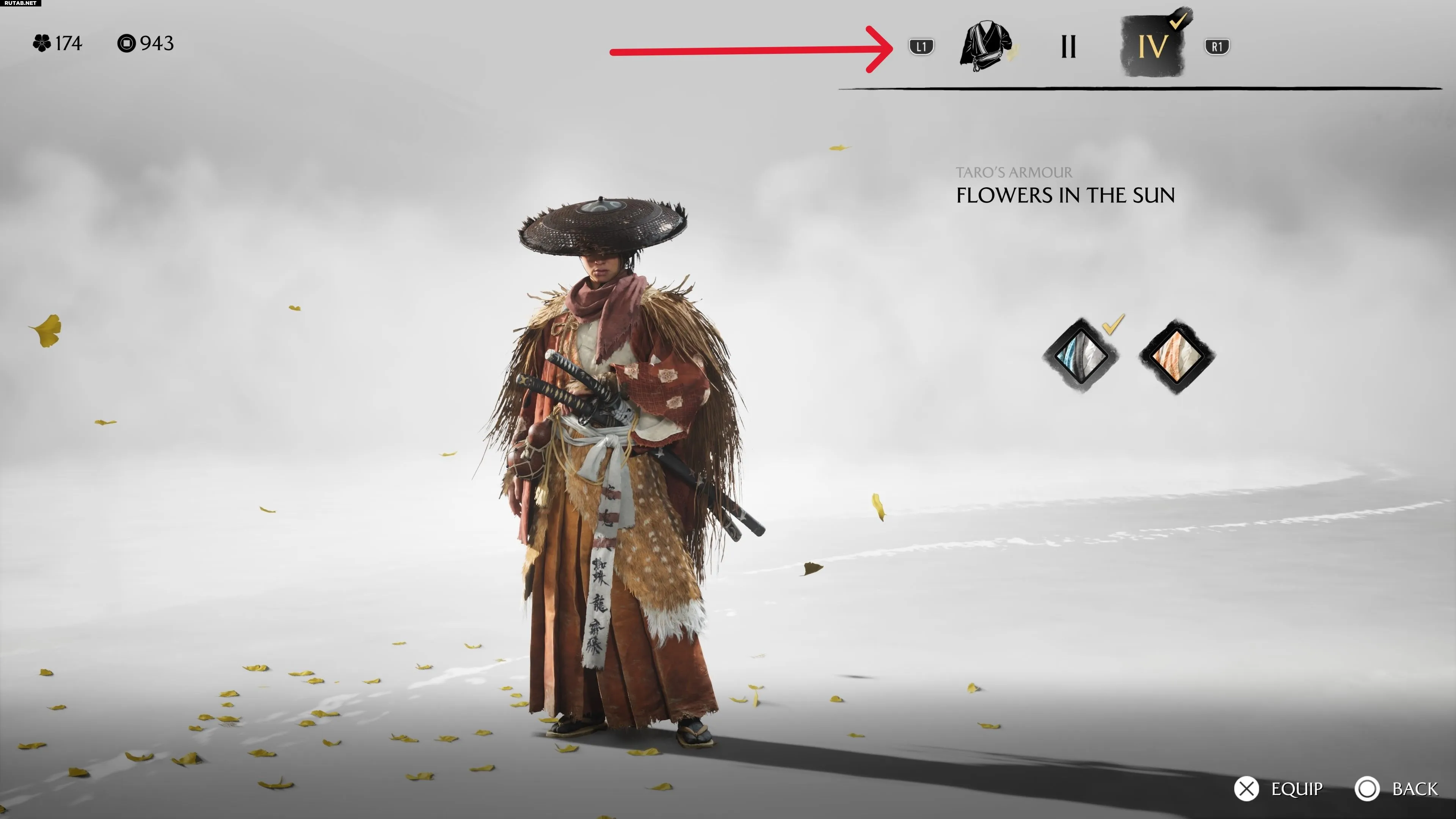 Также в этом меню можно возвращать предыдущие версии брони с помощью L1 и R1. Каждое улучшение брони меняет её внешний вид, но через это меню вы можете вернуть визуал от первого до четвёртого уровня улучшения. Это изменит только внешний вид брони, не влияя на её бонусы и характеристики.