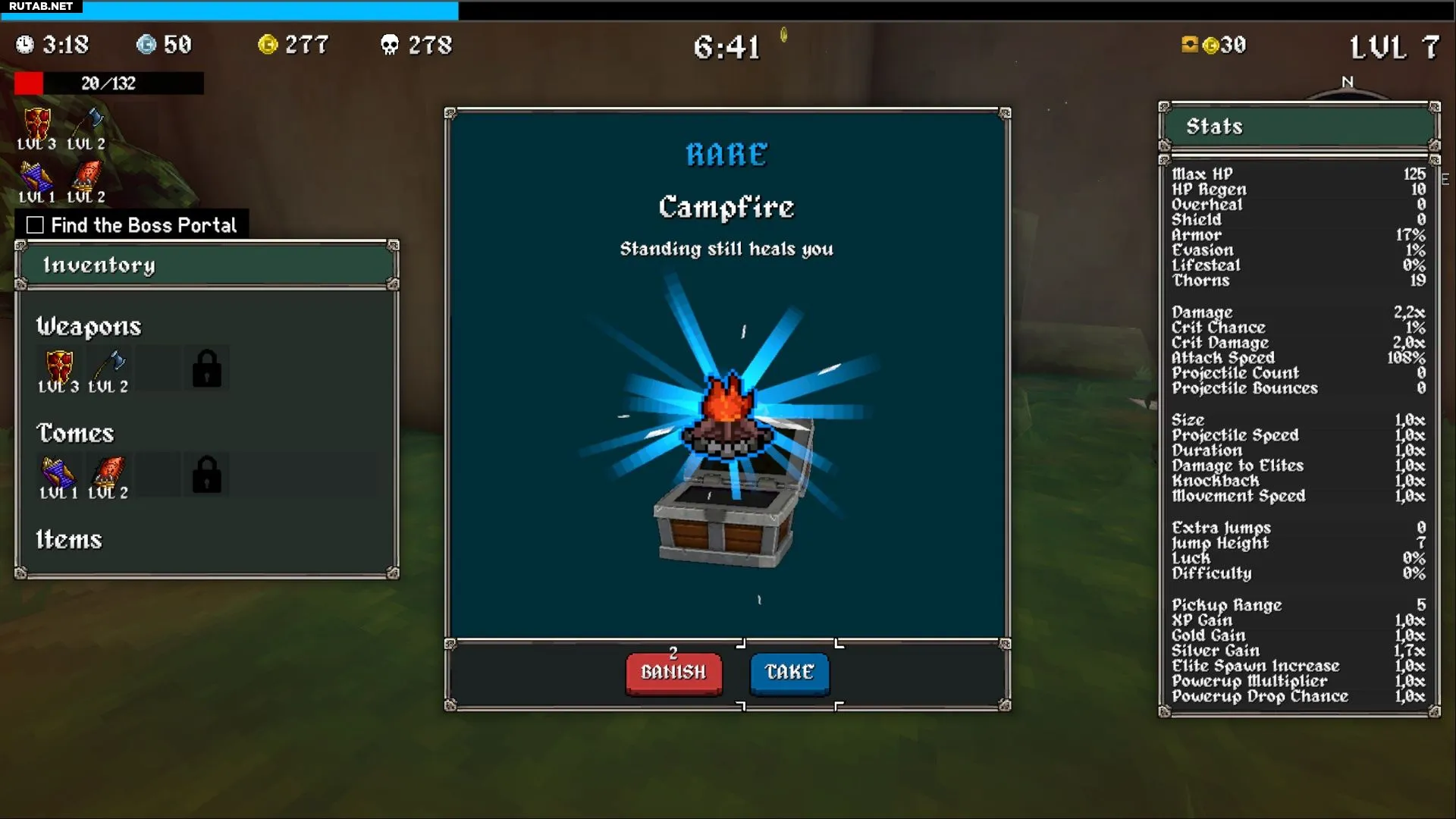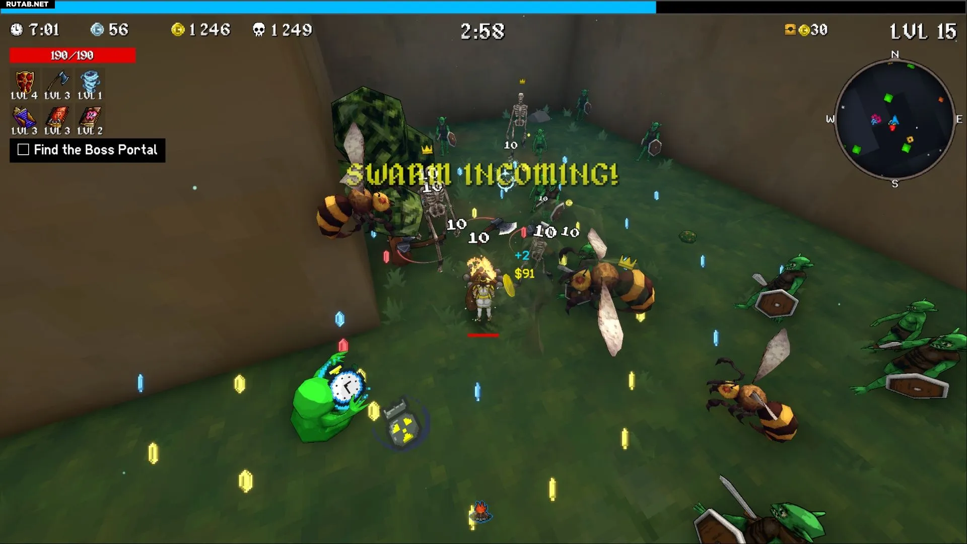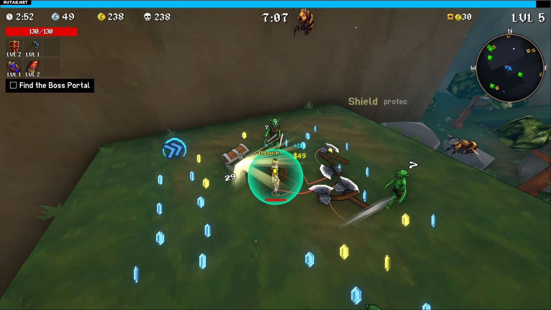 Основная сложность заключается в том, что игрок не может двигаться, чтобы подбирать осколки опыта, сундуки, горшки и святилища, что сильно затрудняет прокачку персонажа. Однако понемногу опыт будет накапливаться, и при правильном выборе улучшений шанс на успех есть.