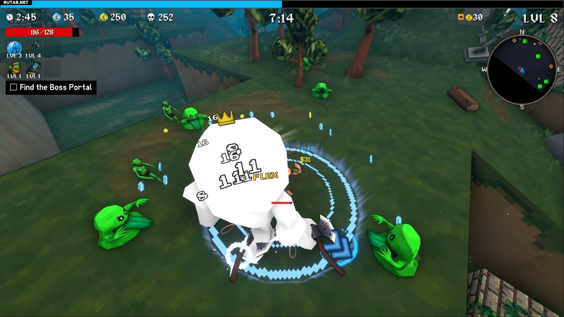 Собрав первые осколки опыта, не стоит сразу улучшать Aura. Лучше сначала получить дополнительное оружие для увеличения урона или Том притяжения, который поможет подбирать осколки опыта, упавшие далеко от Megachad.
