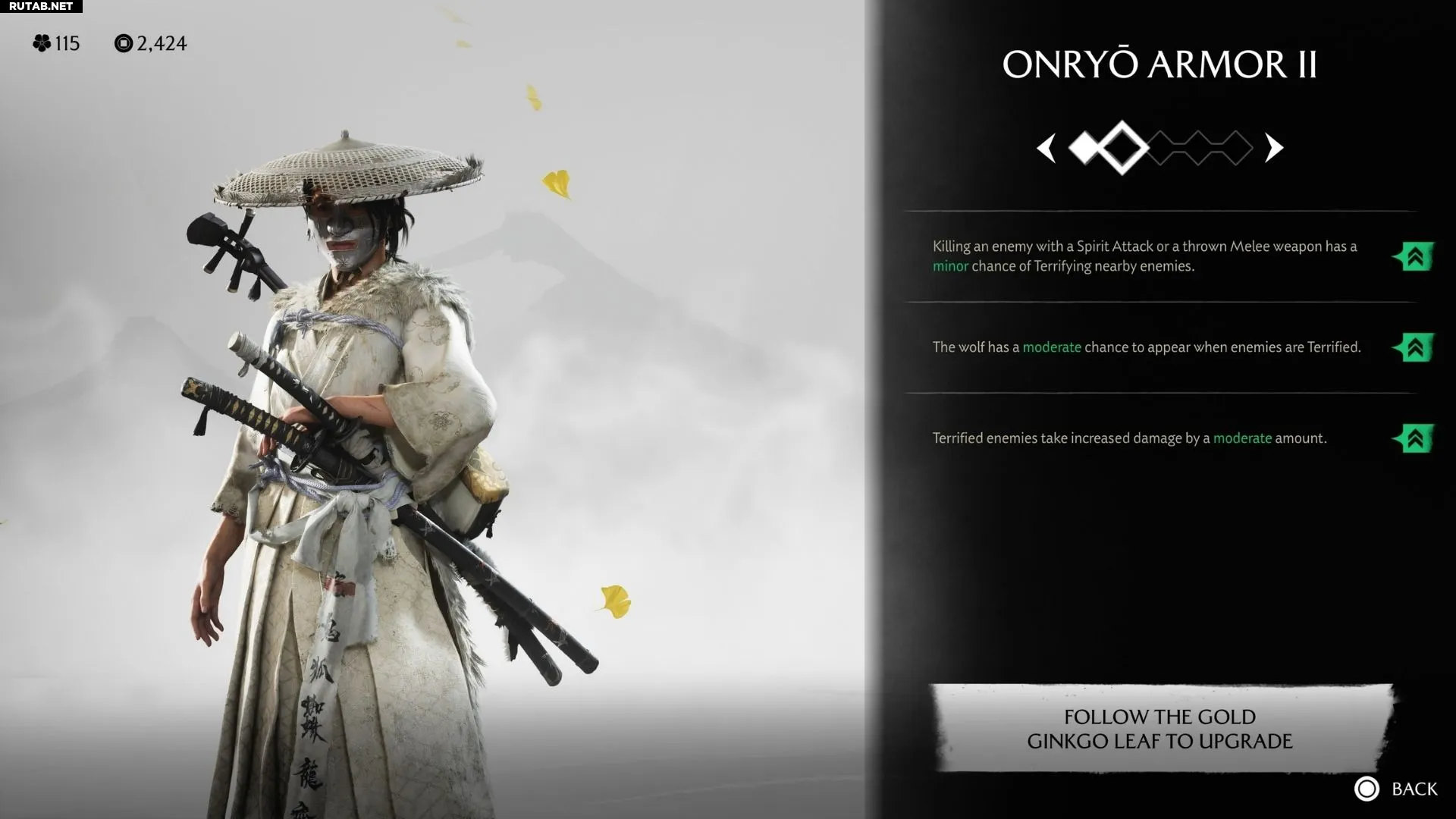 Игроки могут быть сбиты с толку описанием доспеха Онрё в игре. Фраза «Следовать за золотым листом гинкго» может быть непонятна тем, кто не обратил внимание на игровую терминологию.