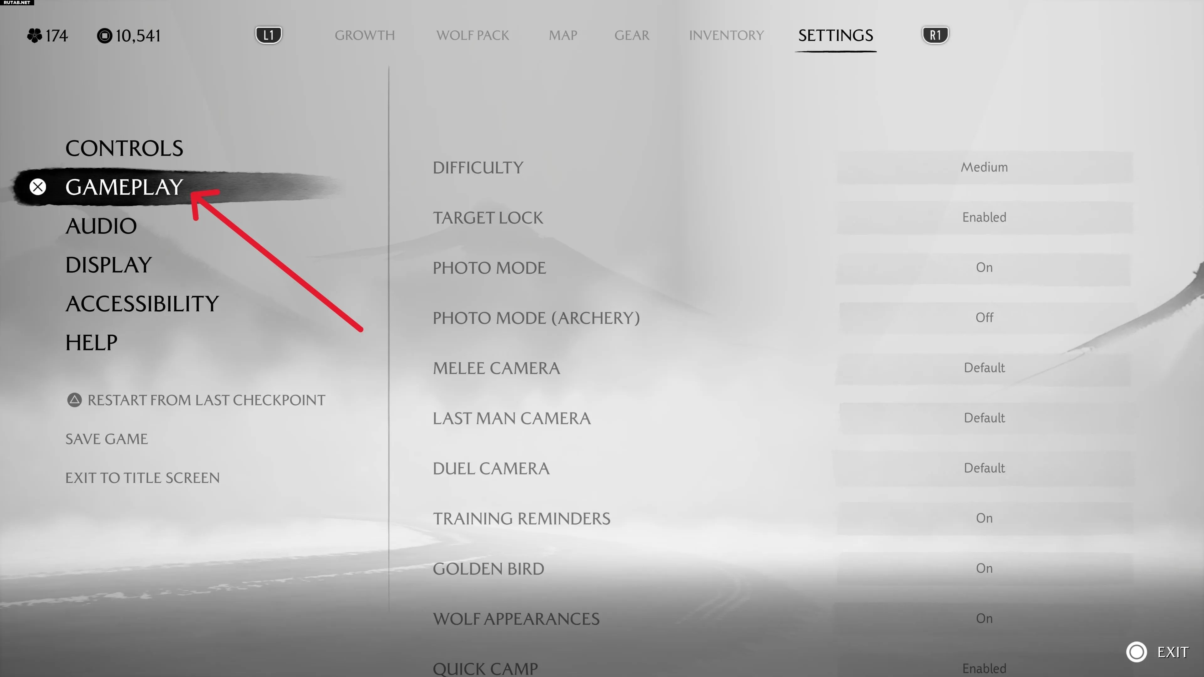 - Выберите «Геймплей» (X).