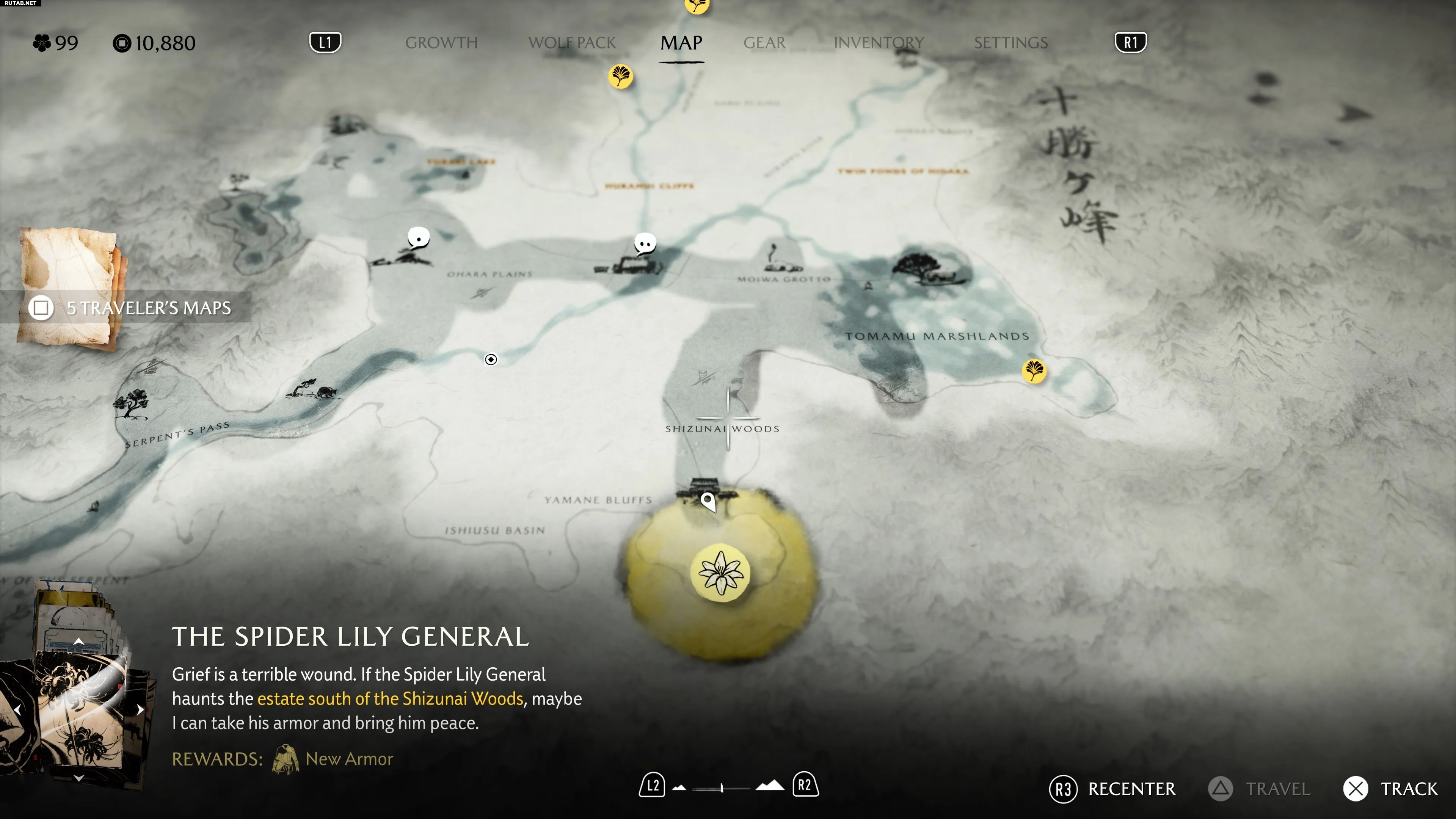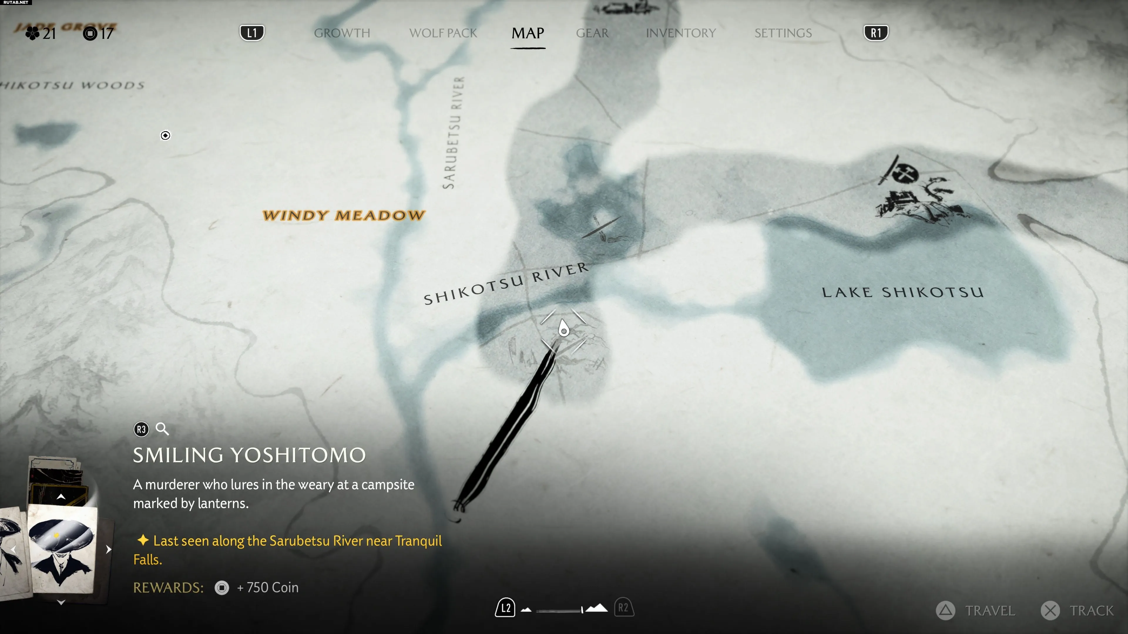 Одной из первых локаций, которую стоит посетить, является гостиница «Тень Ётэя» — она отмечена на карте в рамках сюжета. Возможно, его там не будет сразу, но игроки могут встретить картографа Исабуро, который продаёт карты и даёт квест «Потерянные в раздумьях».