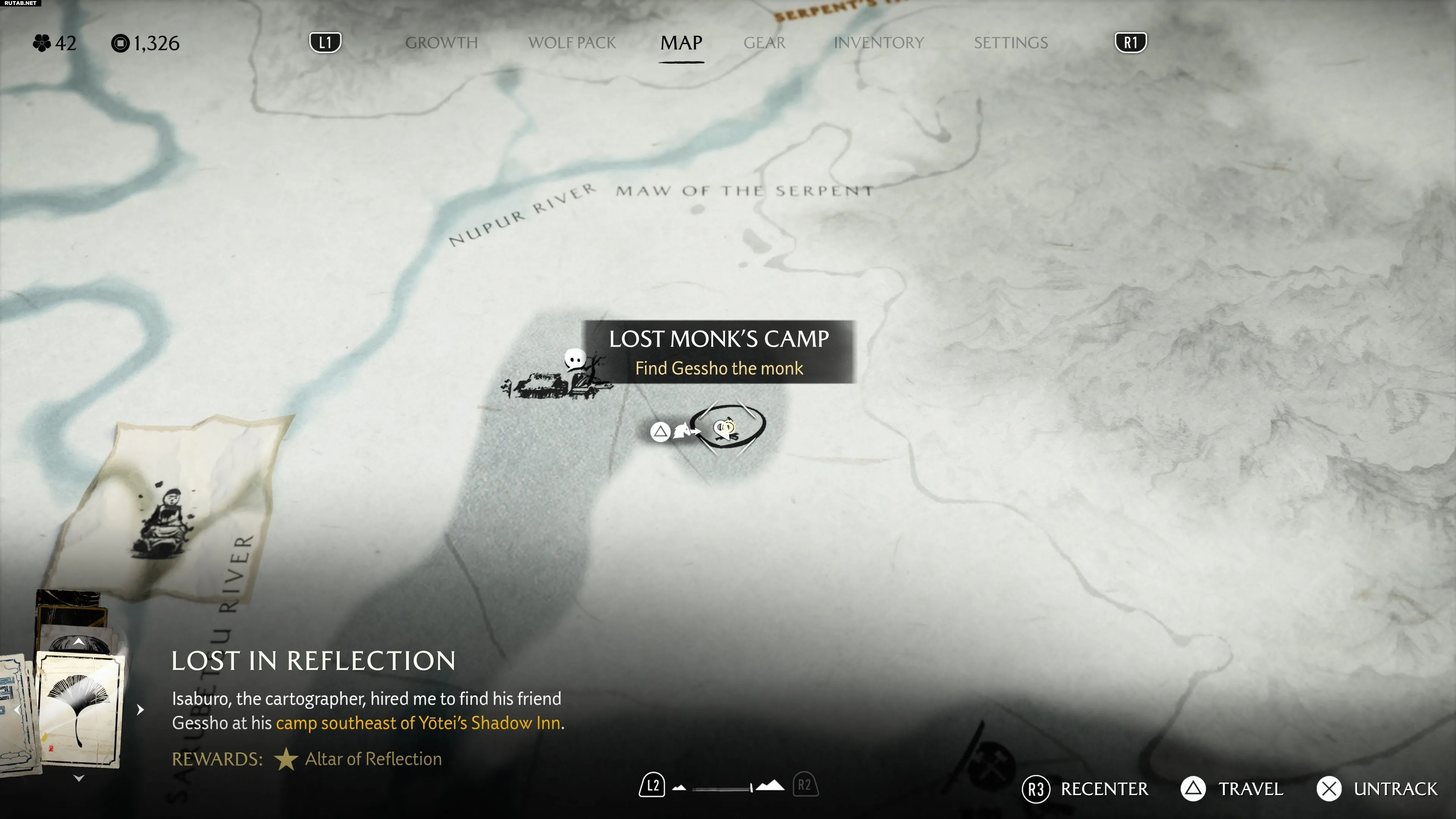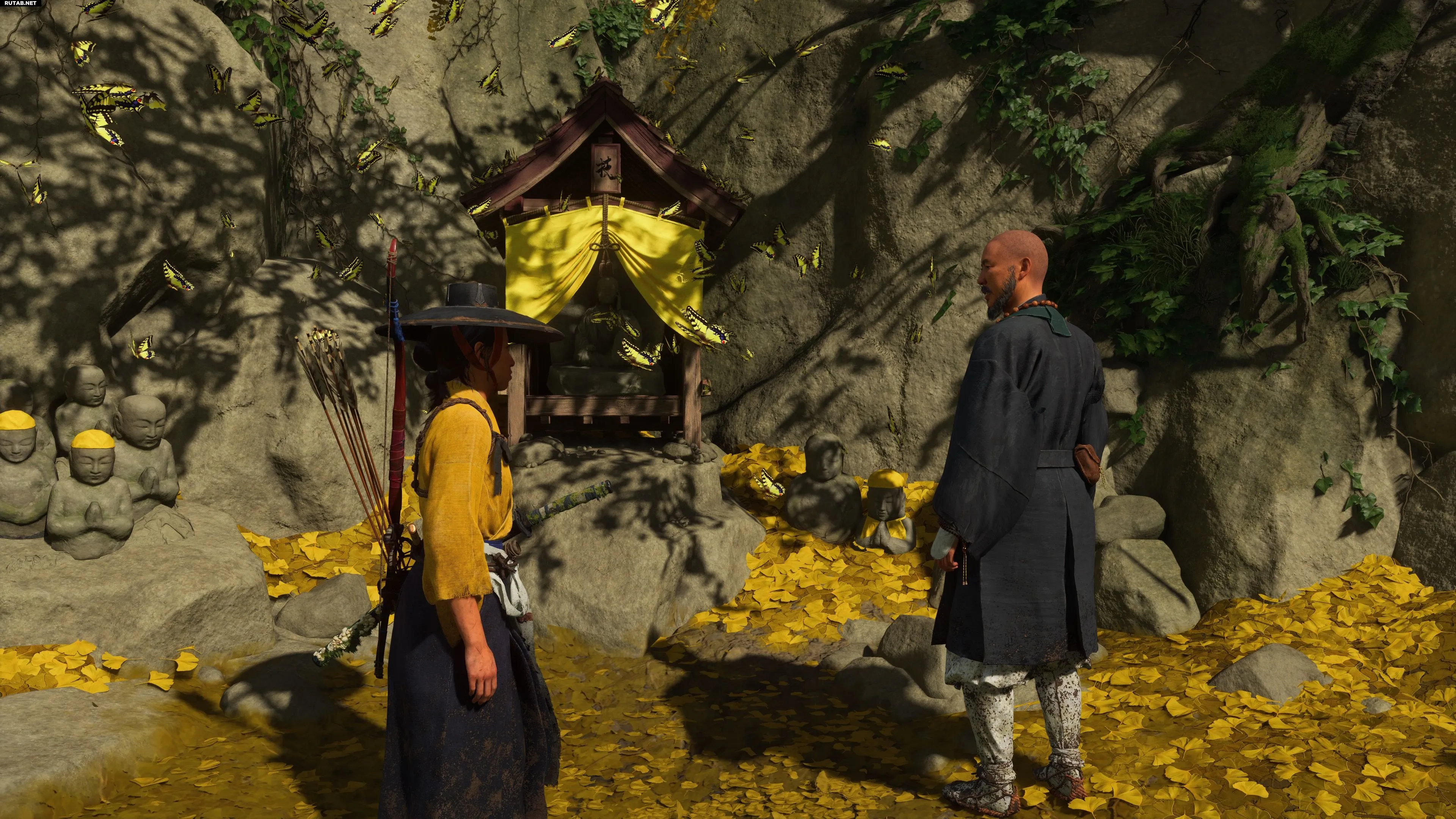 Нужно отправиться к югу от гостиницы, чтобы найти монаха Гэссё. Он приведёт игроков к Алтарю размышлений — именно здесь можно изучать навыки в Ghost of Yotei. Этот квест важен, так как он учит находить другие алтари на карте.