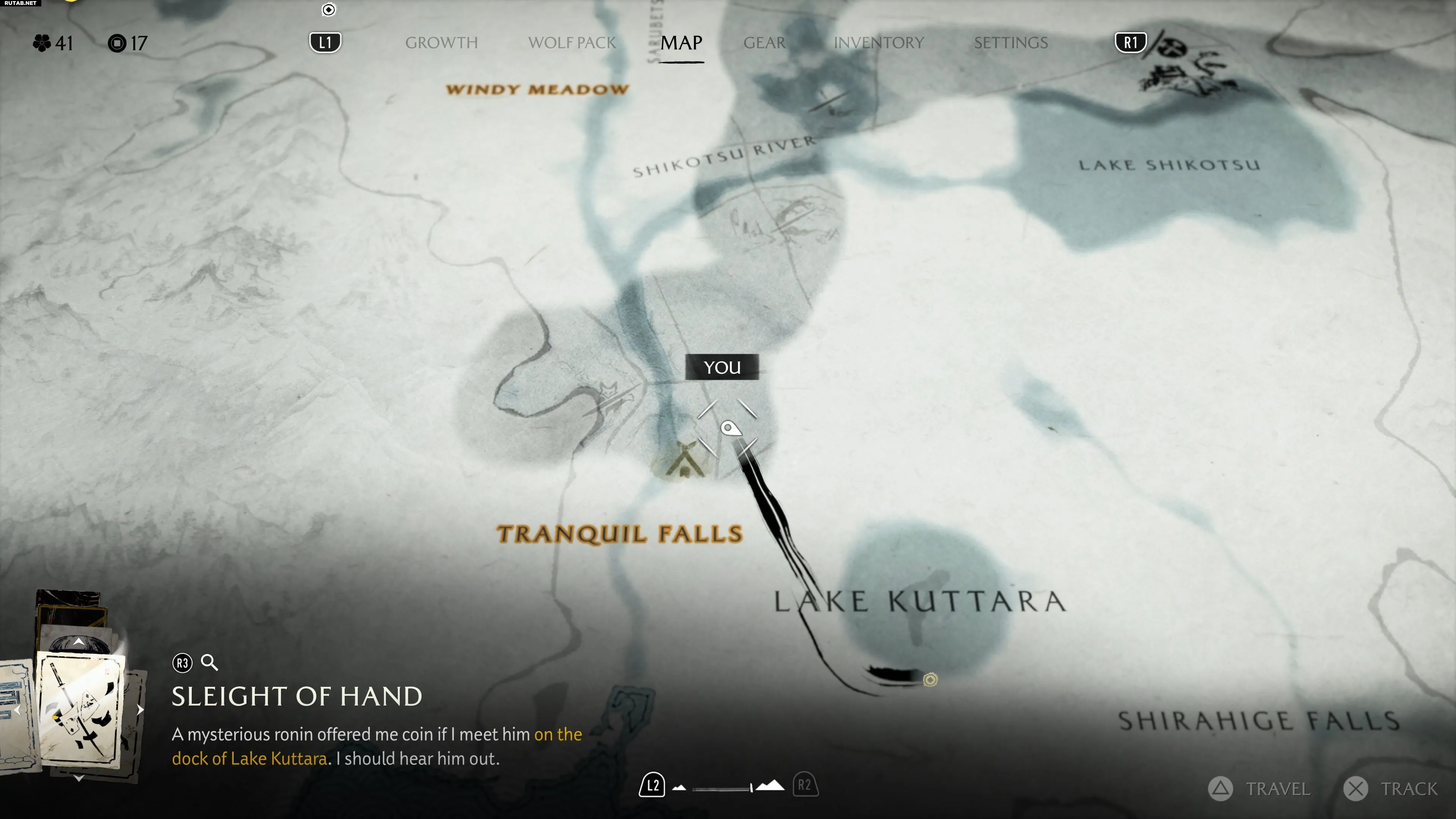 К югу от первого Дерева поединков, у лагеря близ Тихих водопадов, вы встретите безымянного ронина. Он пригласит вас к озеру Куттара, что запустит квест «Ловкость рук». Его игорный дом захвачен бандитами Сайто.