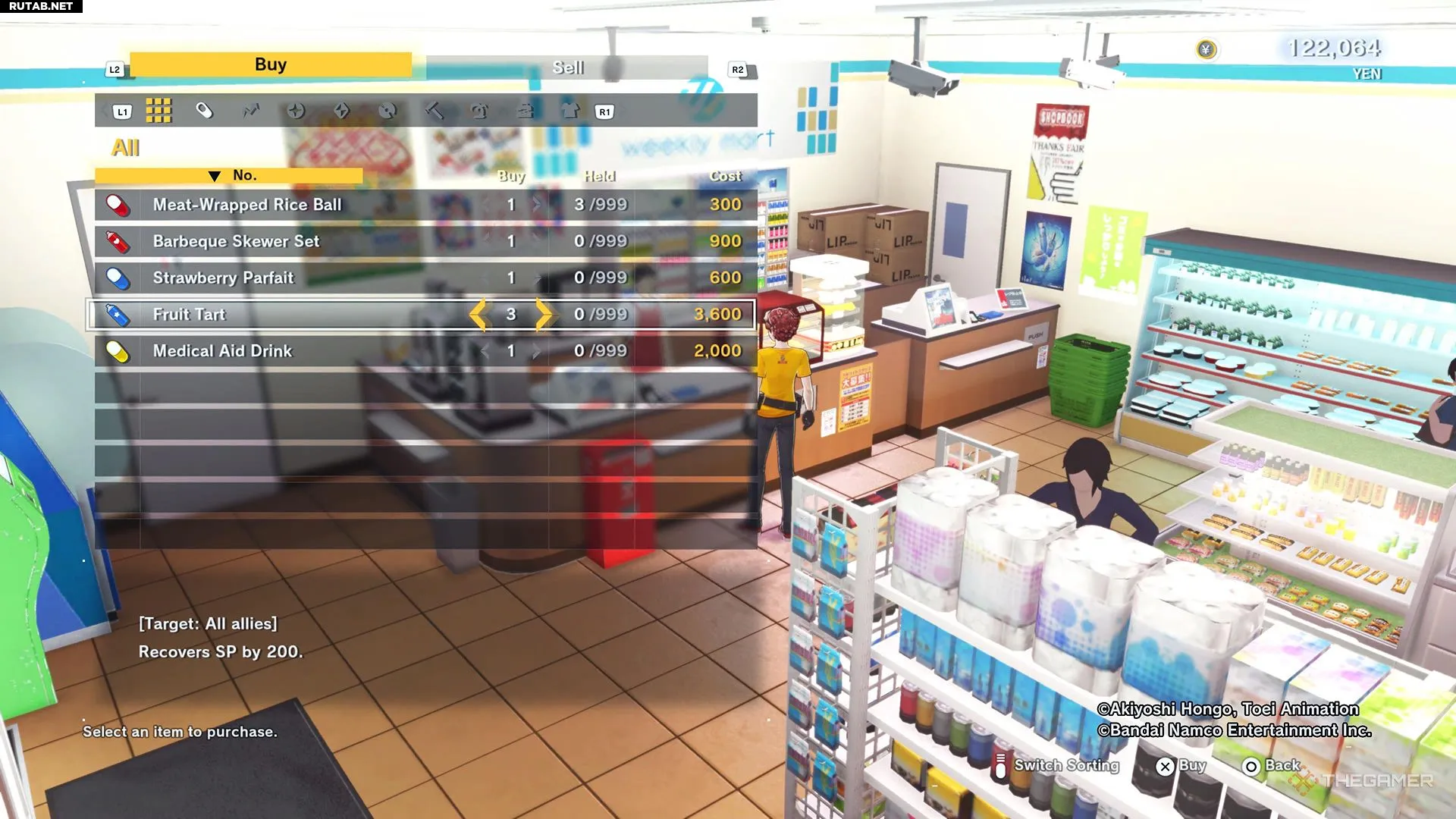 Фруктовые торты продаются только в магазине на улице с домом Минозо в Синдзюку. Если вы уже отправились в Цифровой мир, вернуться в человеческий мир можно будет позже по сюжету.