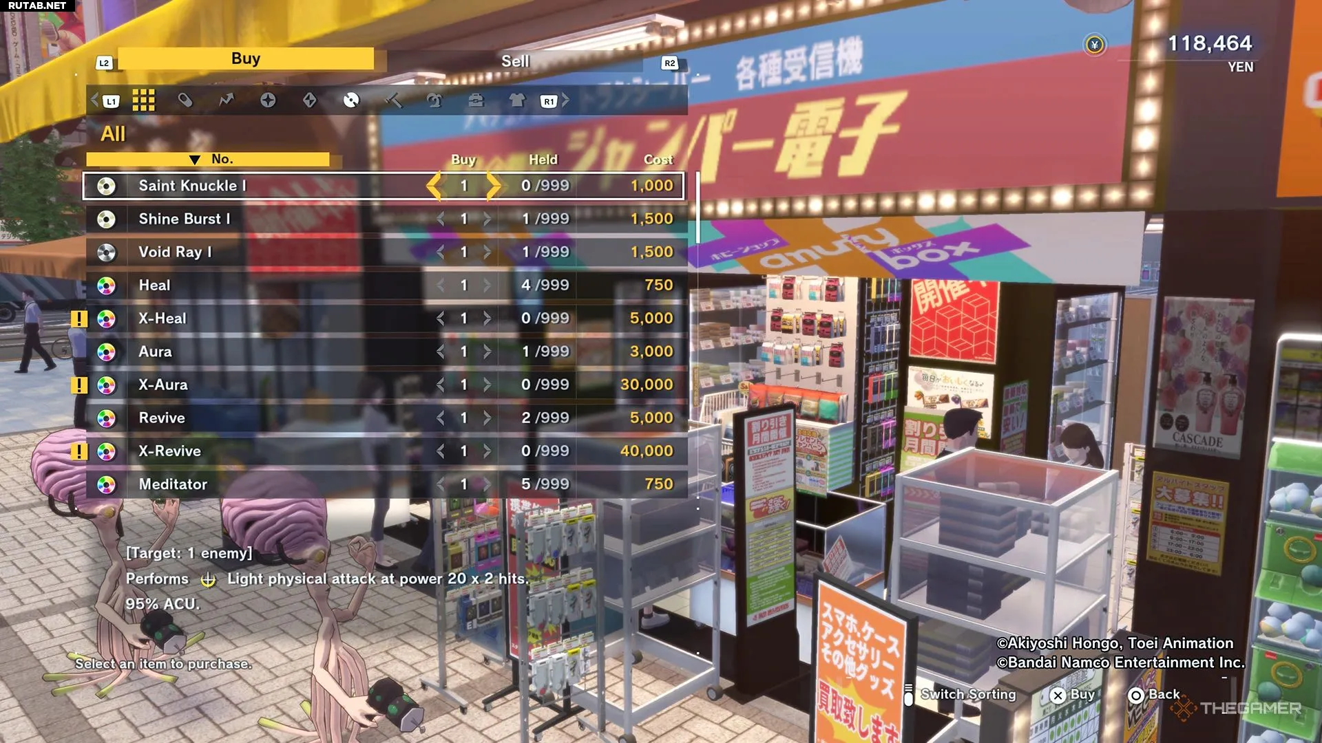 Святой кастет I можно купить в магазине дисков в Театре междумирий или в Акихабаре. Ассортимент Театра меняется по мере прохождения, поэтому, если предмета там нет, проверьте Акихабару.
