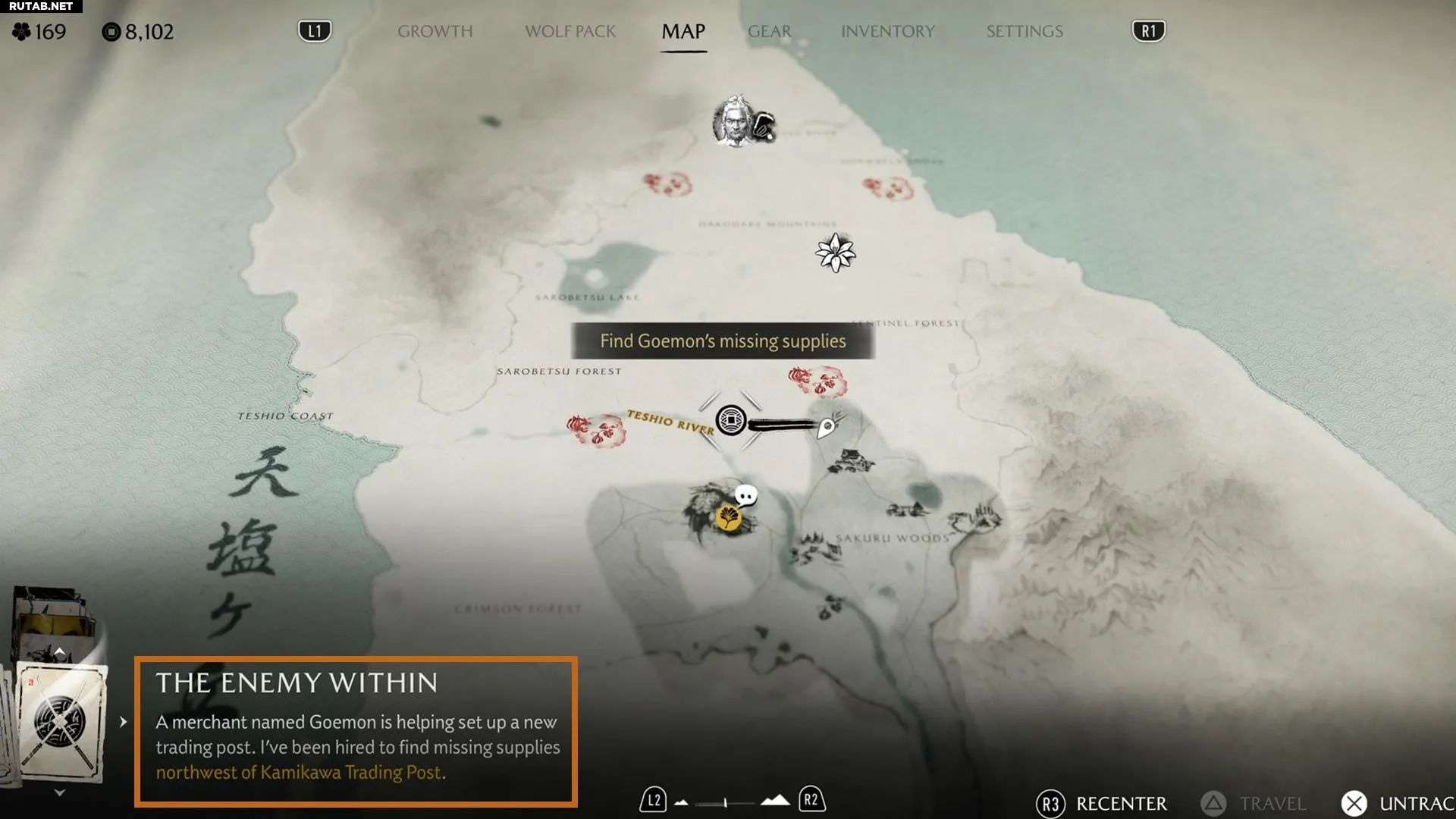 Чтобы получить квест, доберитесь до торгового поста Камикава в северной части карты. Он расположен к востоку от реки Тесио, выше леса Сакуру. Там Ацу встретит Гоэмона — торговца, который привозит на Эдзо товары с материка. Однако вы заметите, что у него нет никакого товара. Гоэмон пояснит, что поставка должна была прибыть три дня назад через северо-западный проход. Ацу сразу понимает, что припасы не дошли, и соглашается помочь. Так начинается квест «Враг внутри».