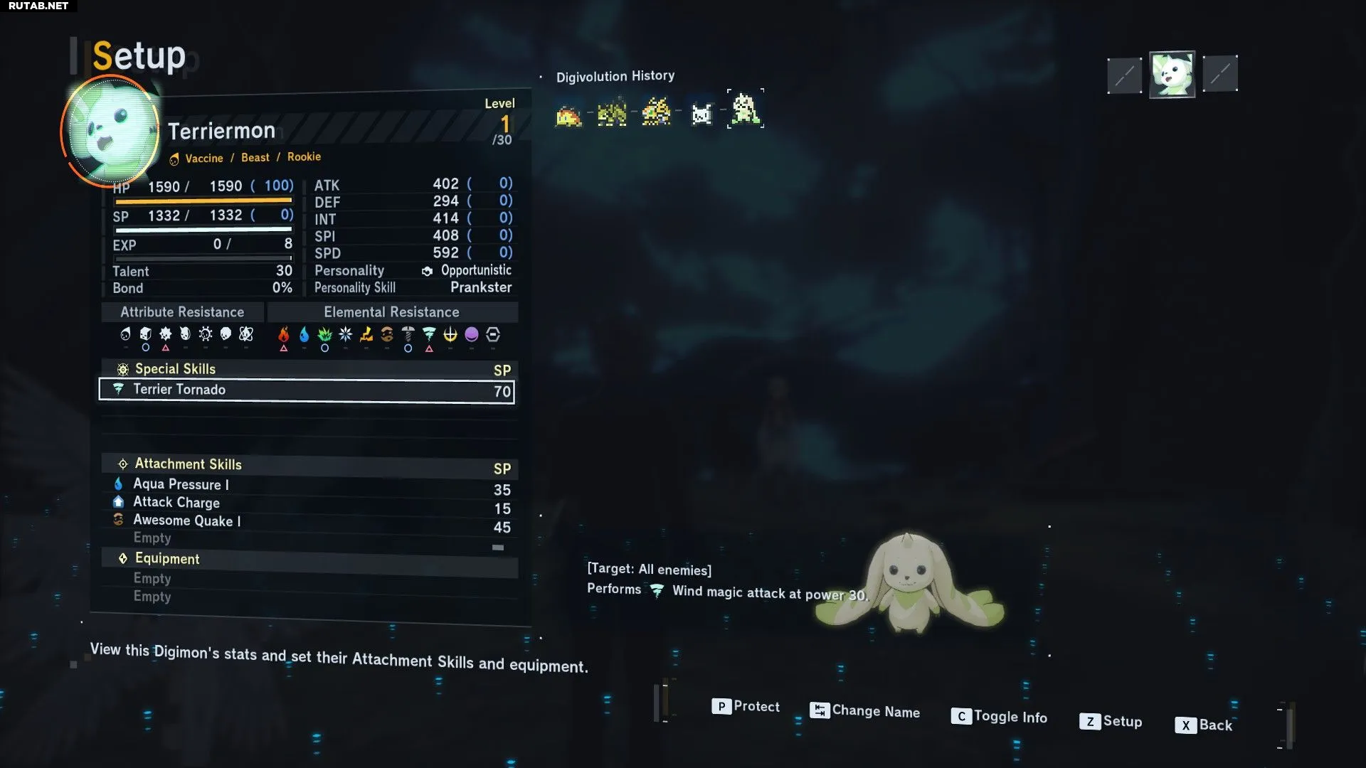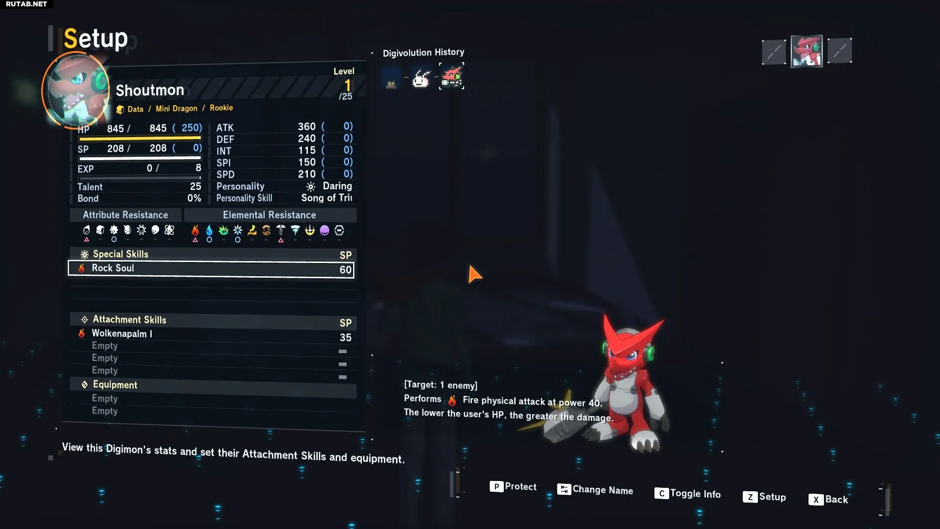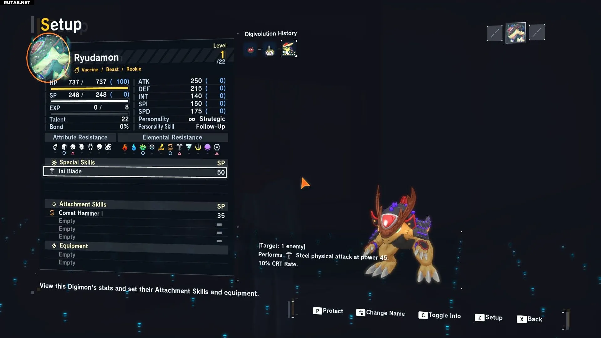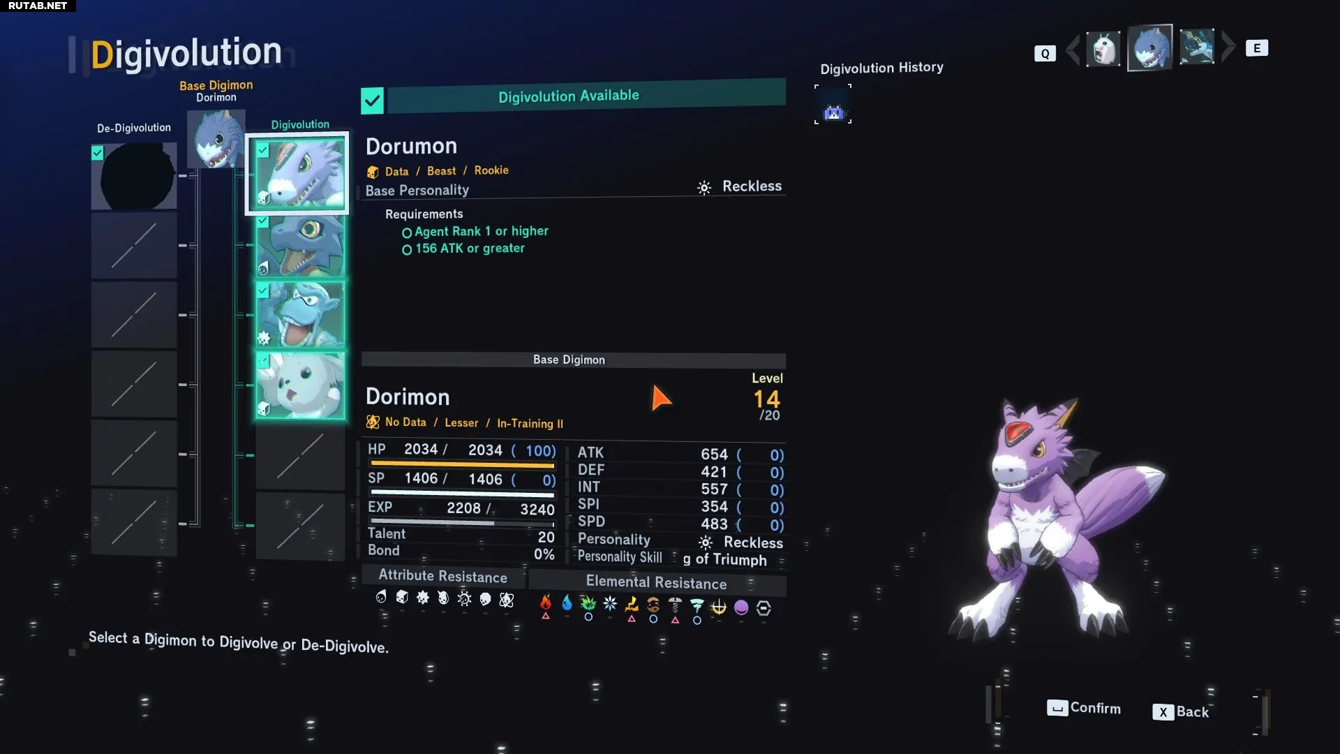 Эти два дигимона атрибутов Data и Vaccine будут полезны на протяжении всего приключения, а когда игроки достигнут поздней стадии игры (Агентский ранг 7+), они смогут объединить их в Jogress-эволюцию и сокрушать любых противников. Ryudamon можно получить рано, эволюционировав Tsunomon при наличии как минимум 250 SP, а Dorumon эволюционирует из Dorimon, которого можно найти в канализации Центрального города на раннем этапе.