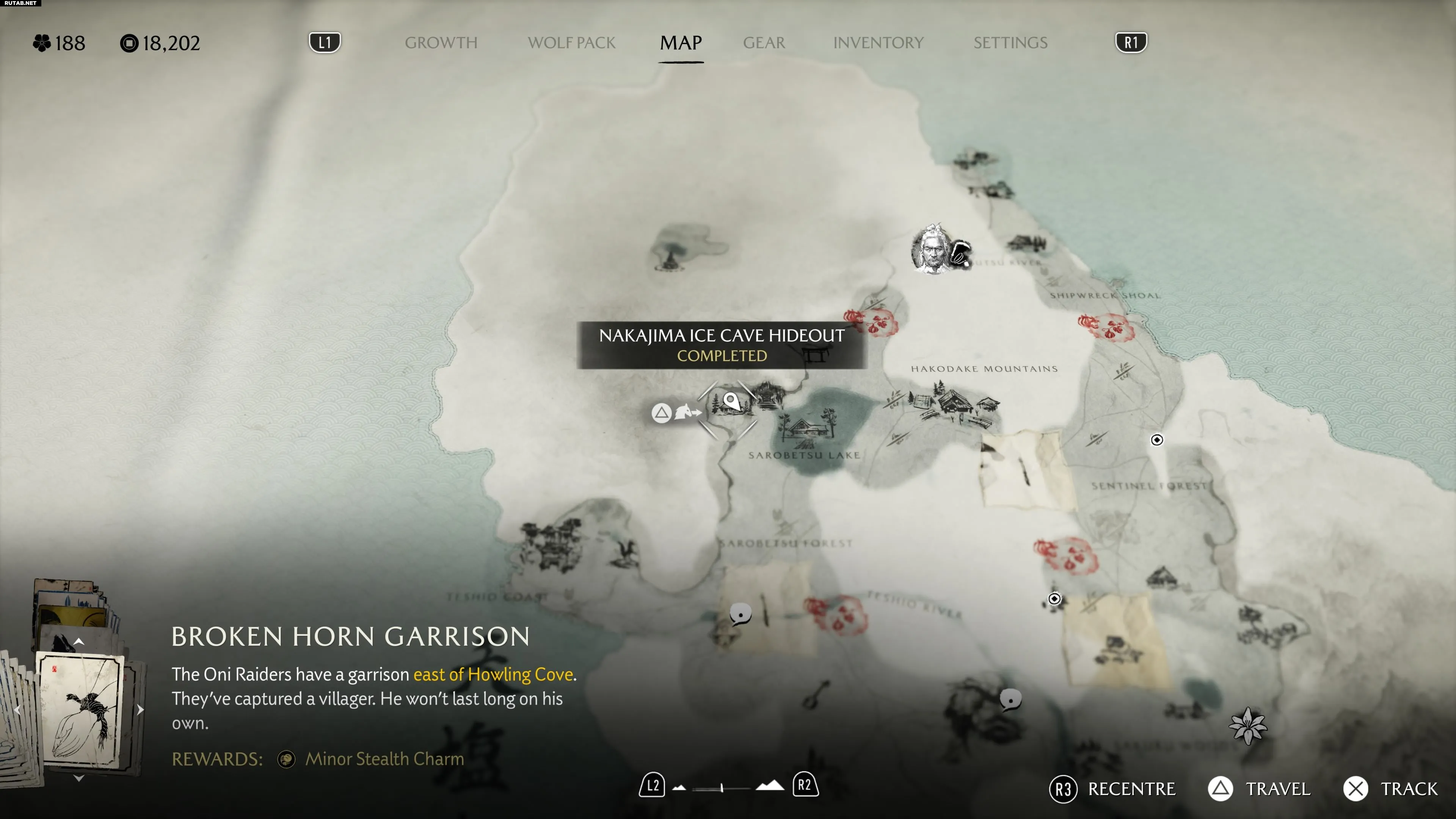 Двигайтесь на север от хребта Тесио, чтобы достичь озера Саробэцу, а затем продолжайте путь на северо-запад, чтобы найти ледяную пещеру Накадзима. Здесь предстоит решить ещё одну лисью головоломку: