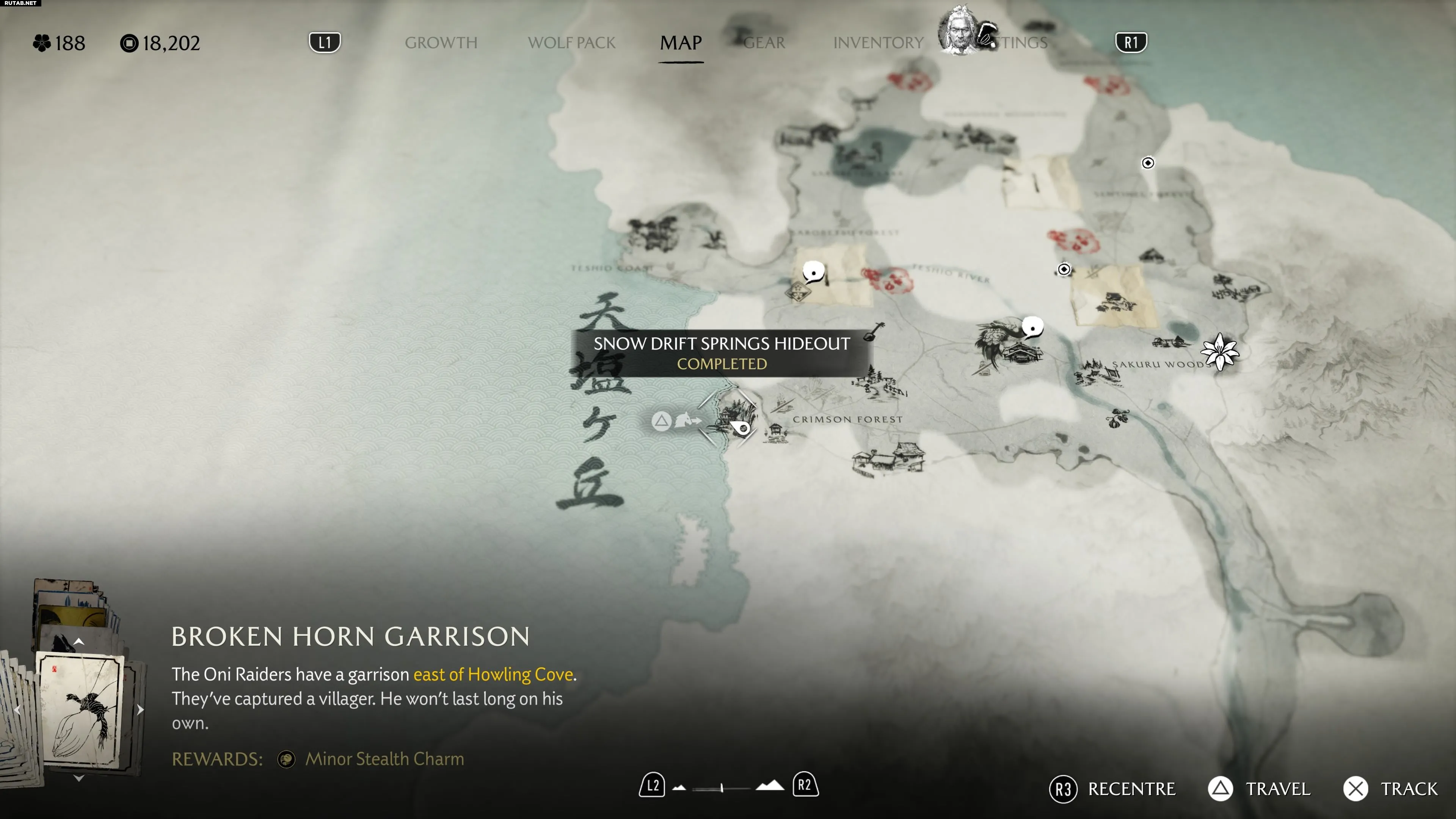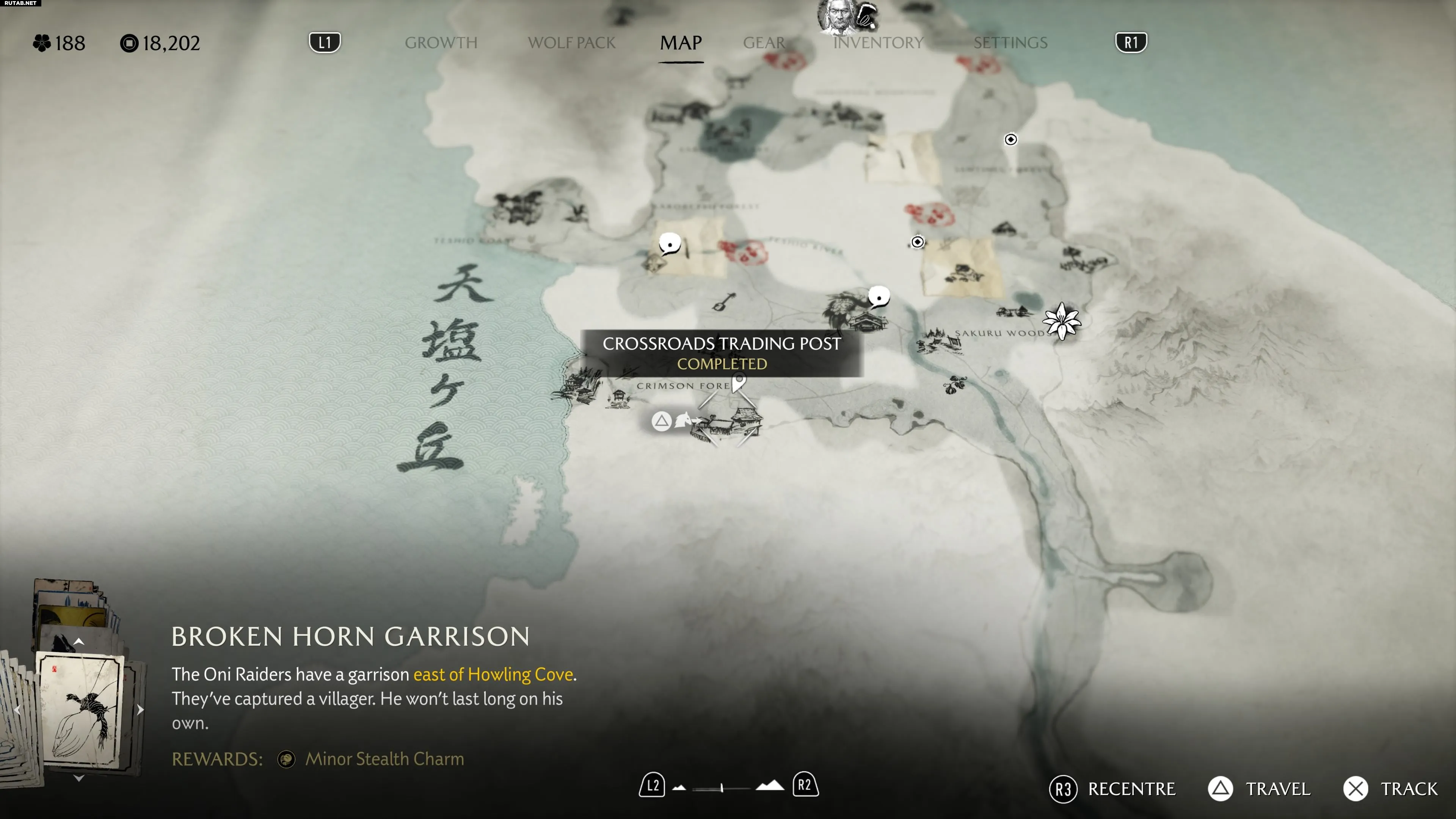 Попав на хребет Тесио, двигайтесь на запад в Багровый лес, где вы найдёте торговую заставу на перекрёстке.