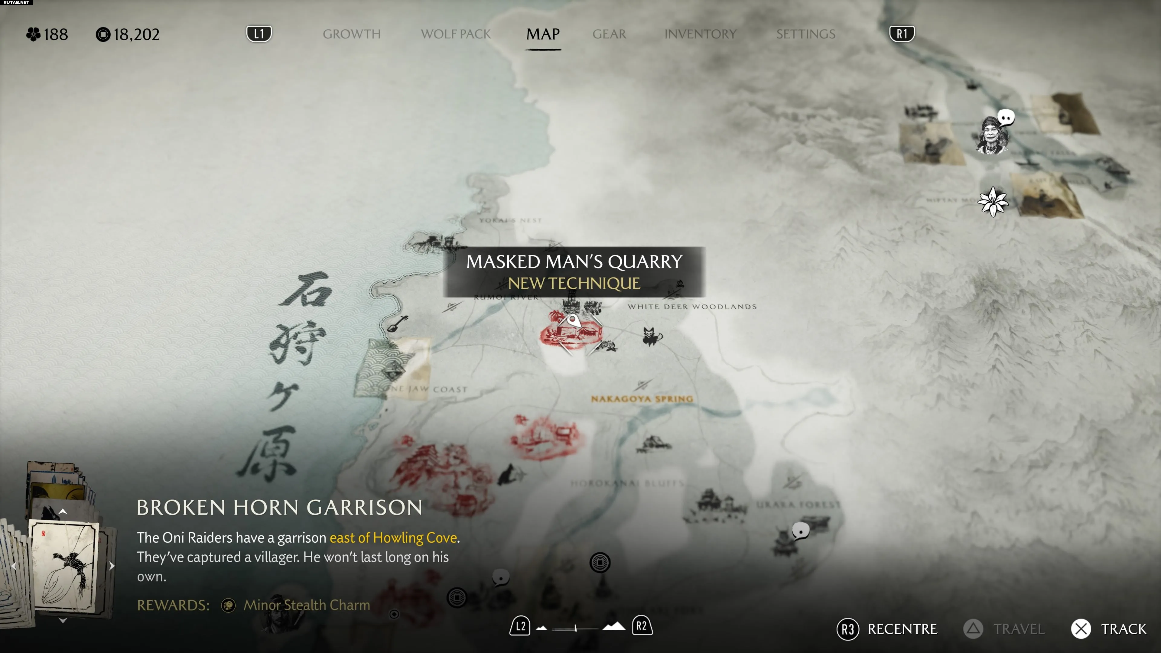 Чтобы найти Каменоломню Маскированного, двигайтесь на север от источника Накагоя до лагеря Мацумаэ. Каменоломня находится совсем рядом, к северу от этого лагеря.